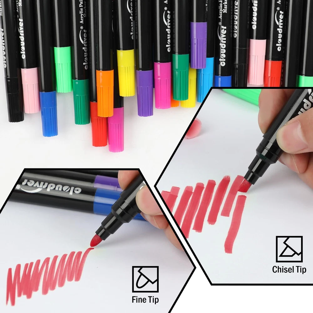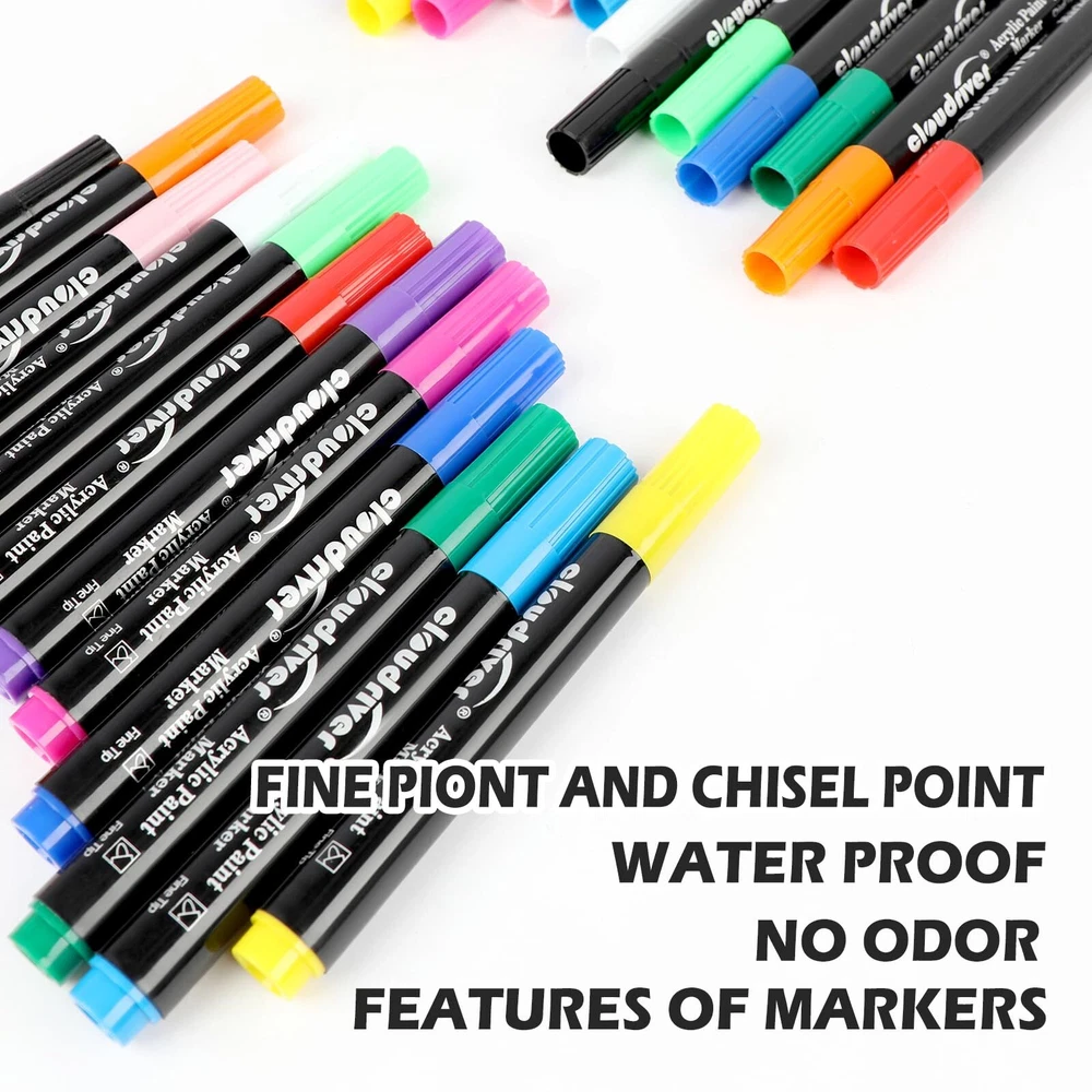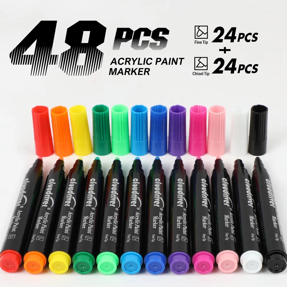 cloudriver acrylic paint markers 12 colors fine and chisel tip, 48 bulk pack 48 Bulk Pack 12 Color:4 x black, white, purple, pink, light pink, blue, light blue, green, light green, yellow, orange and red. Upgraded Tips: Different from traditional acrylic pens, our acrylic pen doesn't need to be shaken or pressed down on the nib! They can be used directly. ——Note:Please cover the cap and put pens horizontally when not in use. Fine and Chisel Tip: Include 24pcs fine tip and 24pcs chisel tip, non-toxic and water-based ink. High-Quality Materials: The markers are made of environmentally friendly material. Write smoothly, dry quickly, clean easily. Safety to Use: Certified non-toxic ink and special low odor formula, works on most surfaces and dries quickly. Service Guarantee:We are committed to creating high-quality products and ensuring a good use experience. If you have any problems in using our products, please contact us in time, and we will actively solve the problems for you.