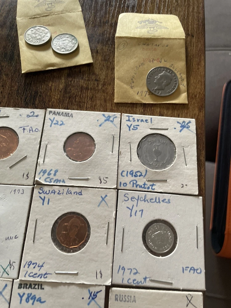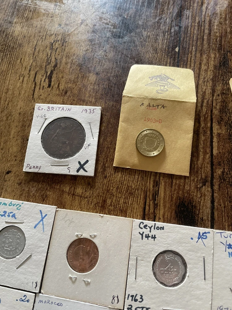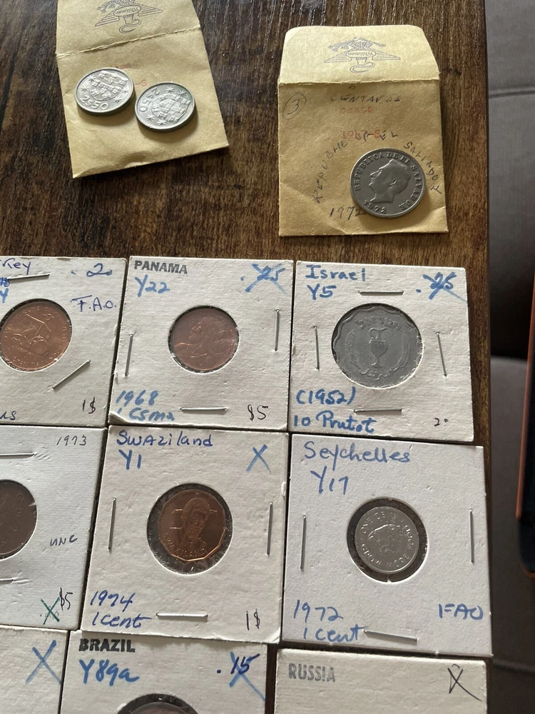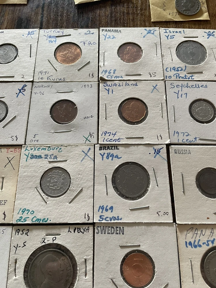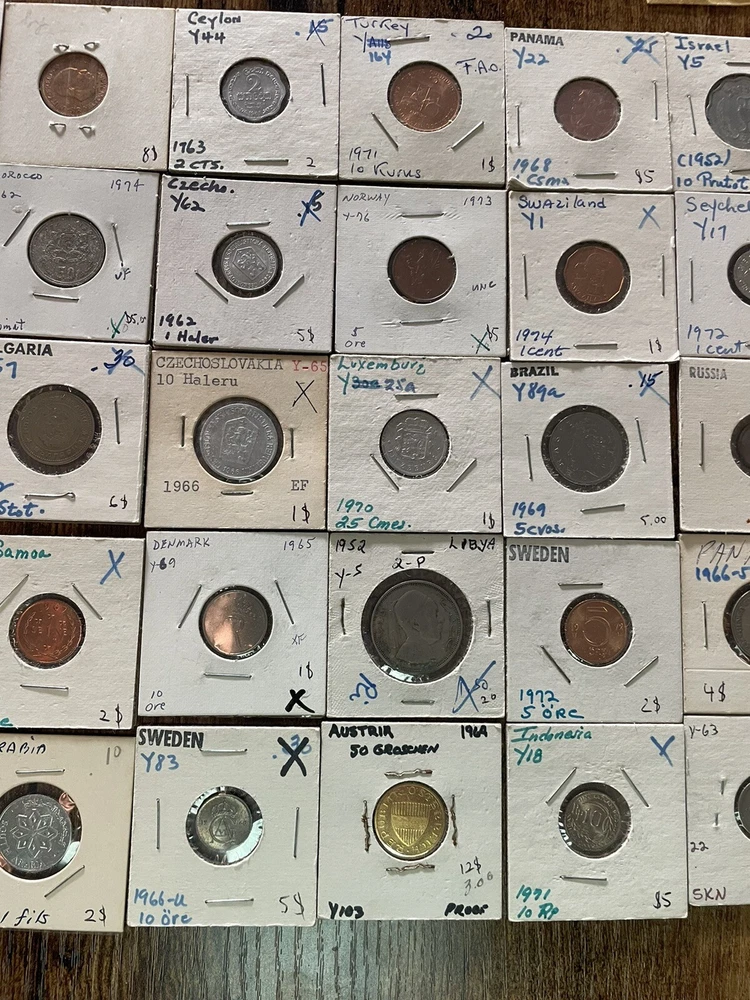 This coin collection lot includes a variety of coins from around the world. perfect for any collector or enthusiast. The coins come from various years and are uncertified, making them a unique addition to any collection. Whether you're a seasoned collector or just starting out, this lot is a great way to add some coins to your collection. 45 coins in this collection total