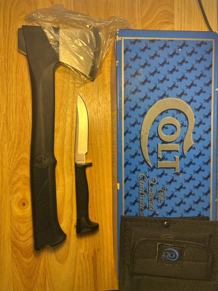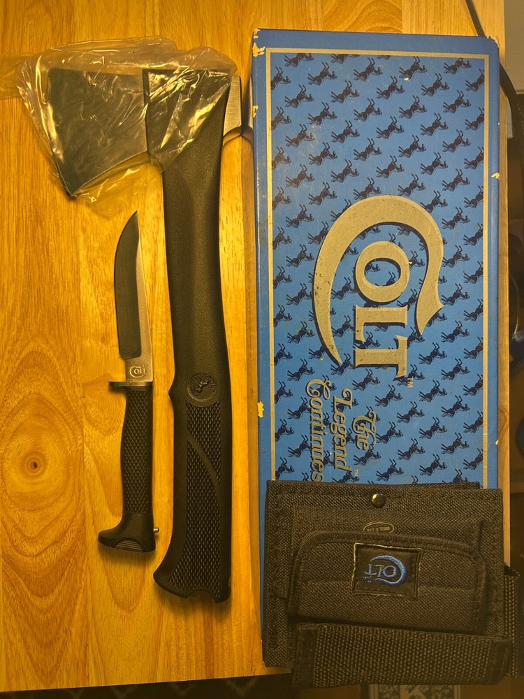 colt trailblazer knife axe combo including sheath. Please see photos for condition.