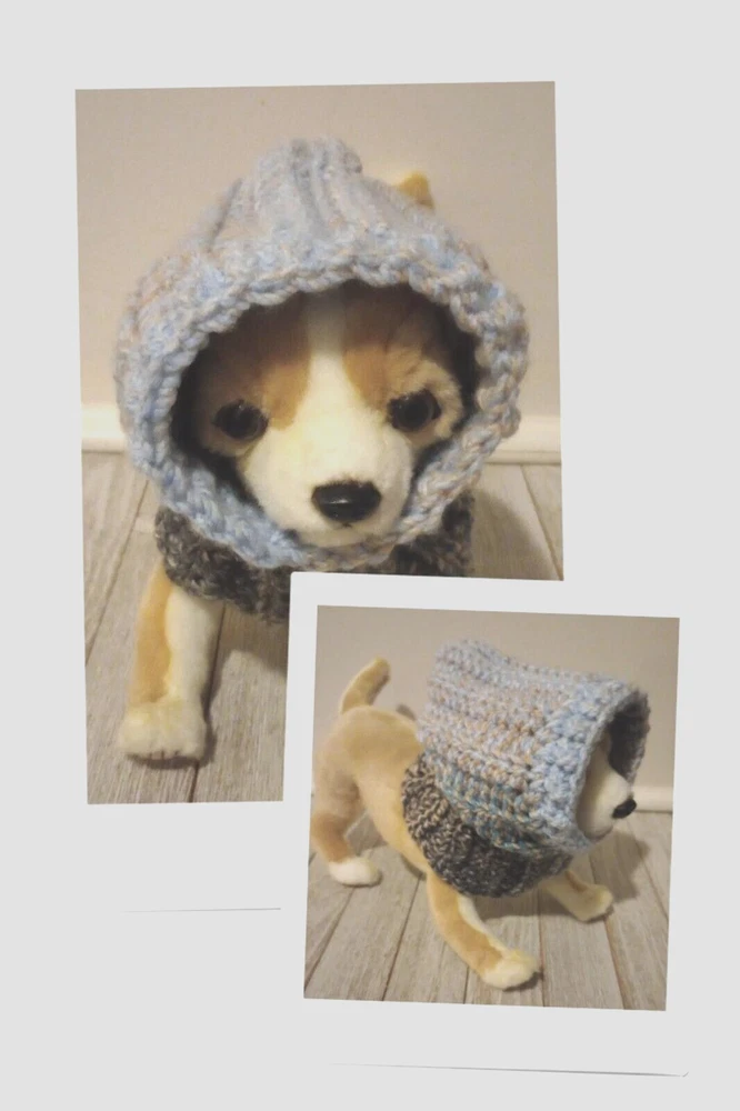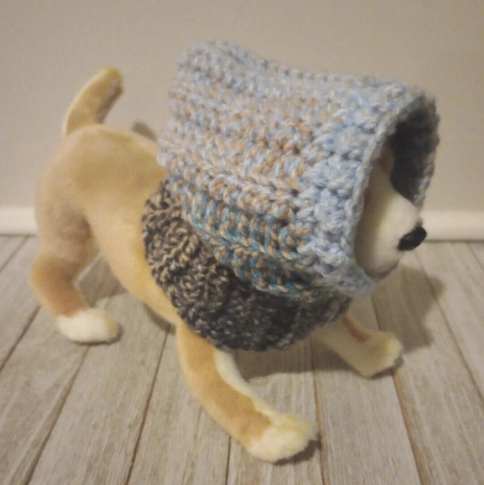 crochet handmade dog pet hood hat snood small medium breed jigsaw blue USA