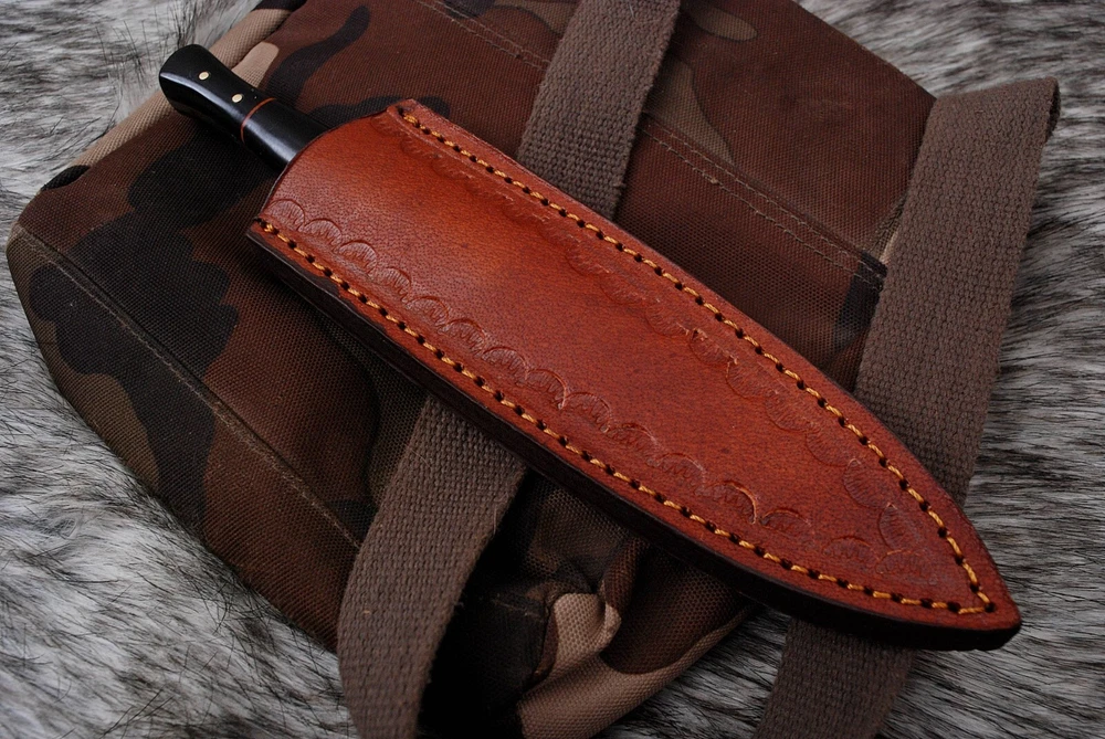 Introducing a top-quality handmade hunting dagger with a double-edged blade made of Damascus steel. This stunning piece features a full tang handle with a black blade color and spear point design. The blade length ranges from 4" inches, making it a perfect everyday carry tool, combat, blade and throwing knife, or even a boot and survival knife. Overall: 9” inch With Genuine leather sheath This original and authentic piece is hand-forged with the highest level of craftsmanship and attention to detail. The knife comes with a sheath included and is also ideal for collectors and enthusiasts. Get your hands on this exceptional hunting dagger, designed and manufactured in the United States, and add it to your collection today!