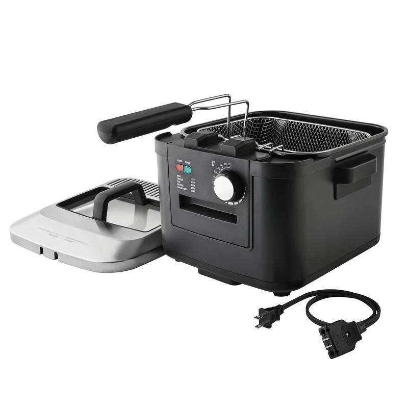 Make cooking easy with the 4L Deep Fryer. The deepfryer features a knob that can be used to set thetemperature quickly and simply. A viewing window allowsthe food to be seen as it cooks. The iron plate housing ofthis temperature-control deep fryer ensures durabilityand long-lasting use.lmmersion heating is used to givethe fried foods an enjoyably crisp texture. A detachablecord allows efficient storage when not in use. A charcoalair filter helps keep the fryer clean. Use the 4L DeepFryer to cook up French fries, onion rings, chicken wingsand many other tasty foods for the whole family. Enamel-coated oil pan Adjustable temperature control4L non-stick removeable enamel tank Cool-touch handle Black Matte Housing Convenient viewing window Condition: New