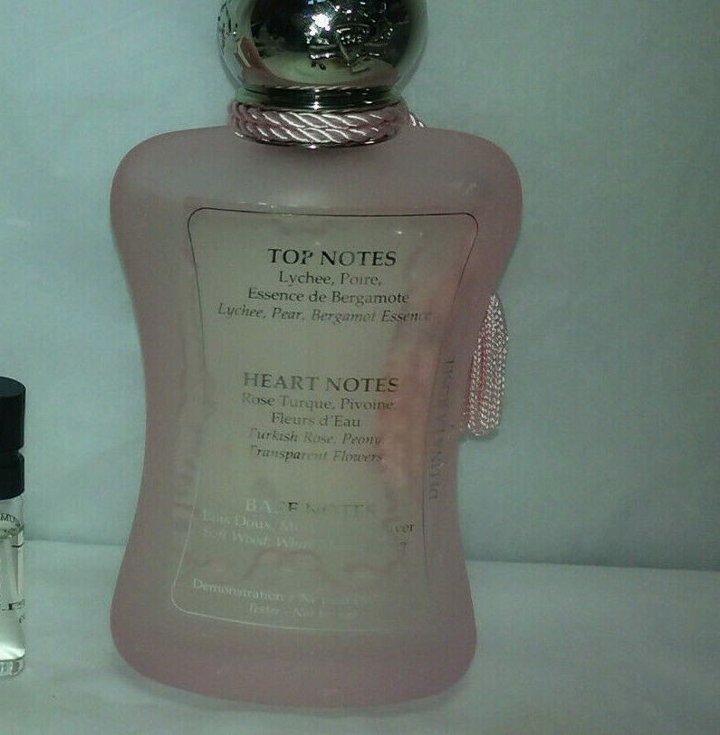 Delina La Rosée by Parfums de Marly 2.5 oz new with box Top notes are Litchi, Pear and Bergamot; middle notes are Peony, Turkish Rose, Watery Notes and Floral Notes; base notes are White Musk, Woody Notes and Haitian Vetiver. Delina floral accords which are dominated by Turkish rose, lily of the valley and peony. all sales are final