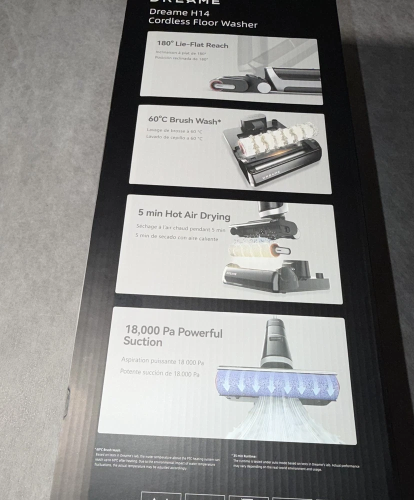 New, open-box item. Powered on to confirm it works, but it has never been used and no water has ever been put in it. The dreame H14 Wet Dry Vacuum Cleaner is a versatile and efficient cleaning solution for your home. With its 180° lie-flat cordless design, this handheld vacuum offers convenient maneuverability and easy access to tight spaces. The 0.9L capacity, washable filter, and bagless design ensure hassle-free maintenance. With a powerful 200W motor, this vacuum provides excellent suction for both wet and dry cleaning, making it perfect for all-around use. Additionally, its smart home compatibility with Amazon Alexa and Wi-Fi connectivity allow for convenient voice control and scheduling.