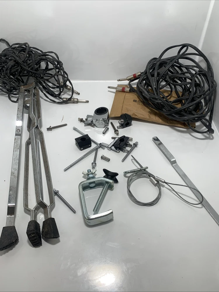 lot of miscellaneous stuff, drum stuff cables. everything in pictures