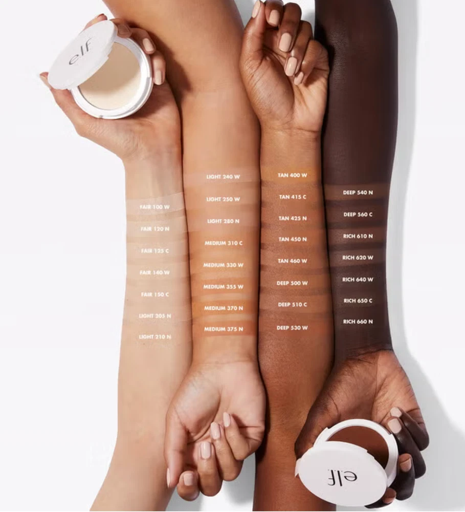 Effect: Matte Scent: Unscented Type: Foundation Country of Origin: United States gtin13: 609332830202 Size: Standard Sun Protection Factor (SPF): SPF 0 Model: 355 Shade: Medium Period After Opening (PAO): 6M Department: Women MPN: 355 W Brand: ELF Features: Vegan, Animal Cruelty-Free, Long Lasting UPC: 609332830202 Formulation: Pressed Powder