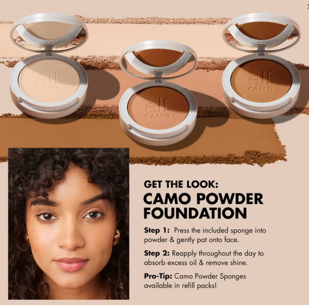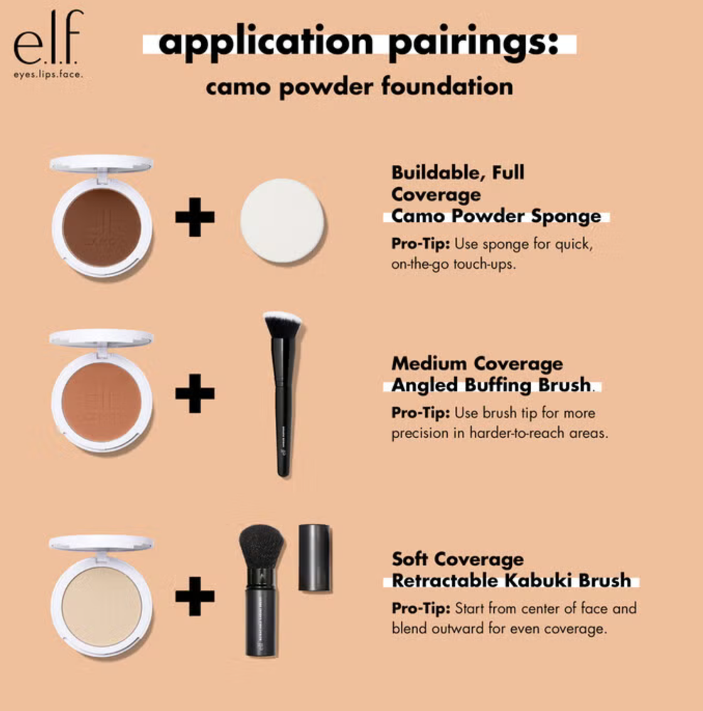 Finally: a primer-infused, long-lasting foundation that achieves a soft-focus, non-cakey look and stays put. e.l.f. Cosmetics Camo Powder Foundation is a superior, buildable formula that delivers medium-to-full coverage for an airbrushed, even complexion that’s shine-free and doesn’t feel greasy. The non-comedogenic pressed powder is lightweight, crease-resistant, talc-free, and creates a smooth, natural canvas for all skin types and tones. Choose from a wide range of 30 shades.