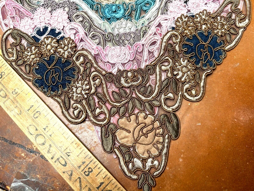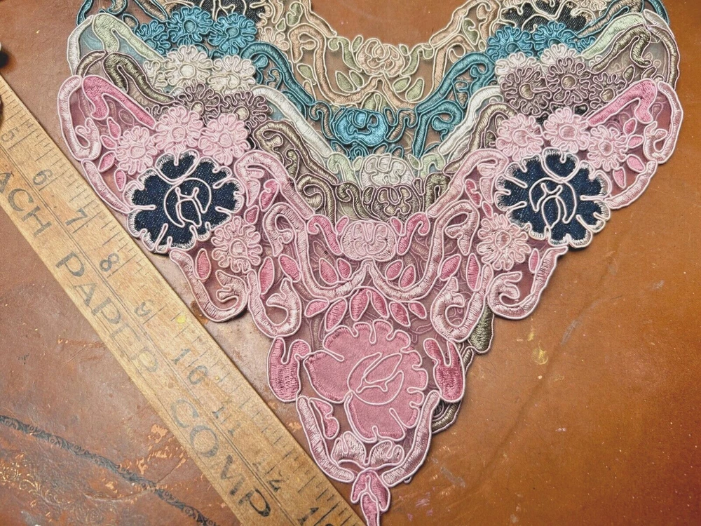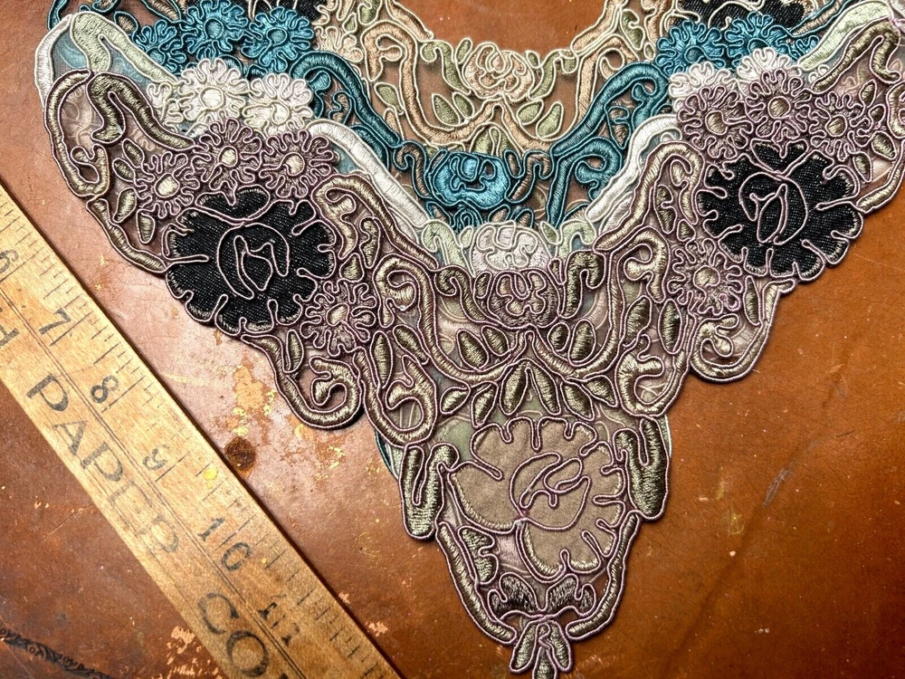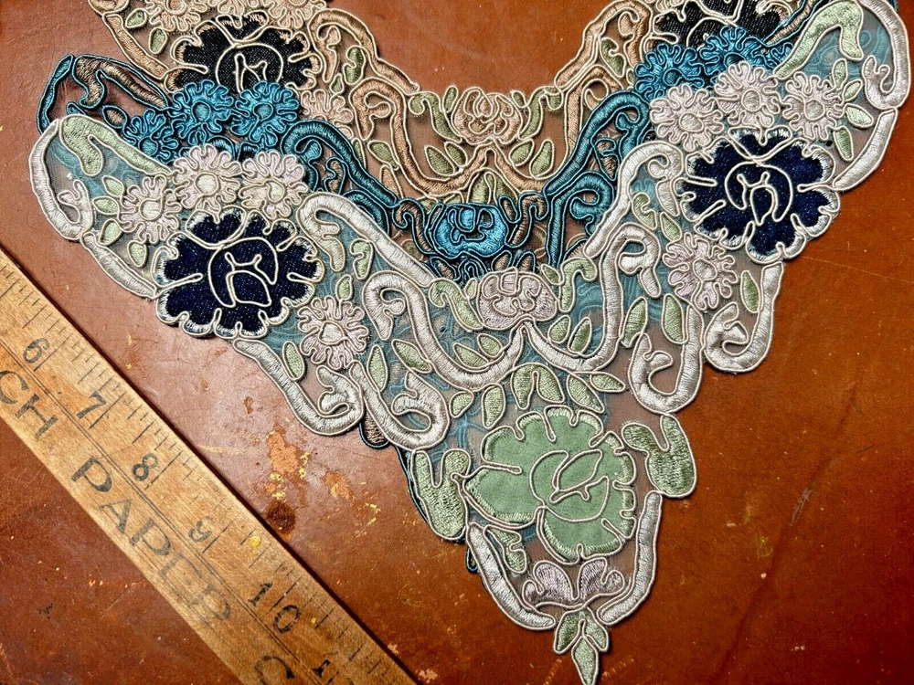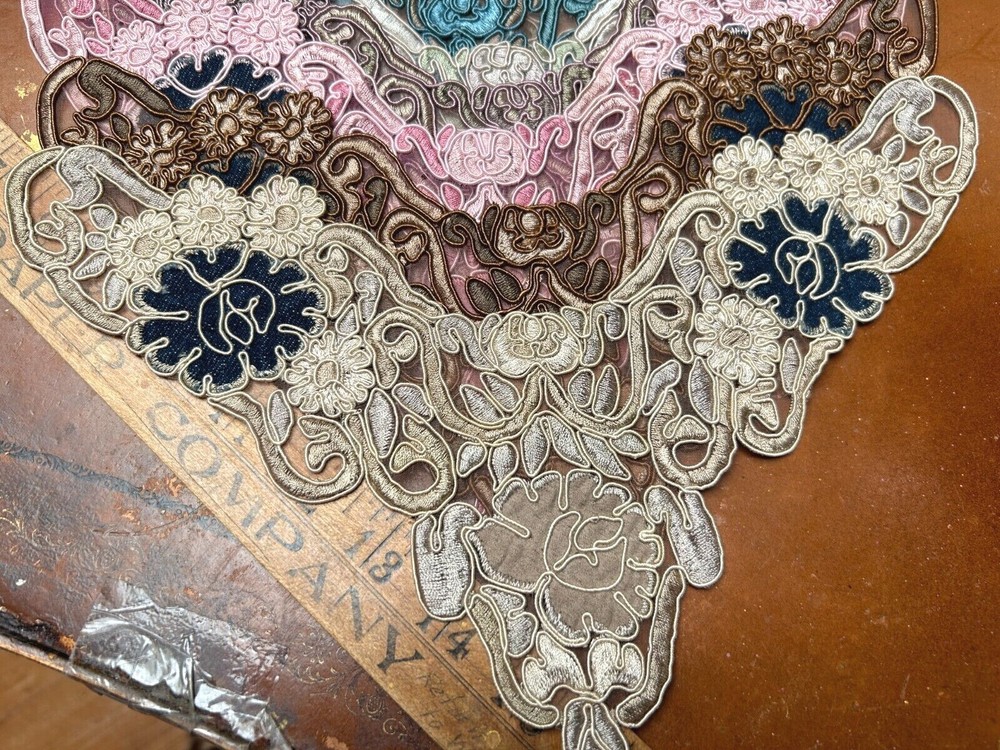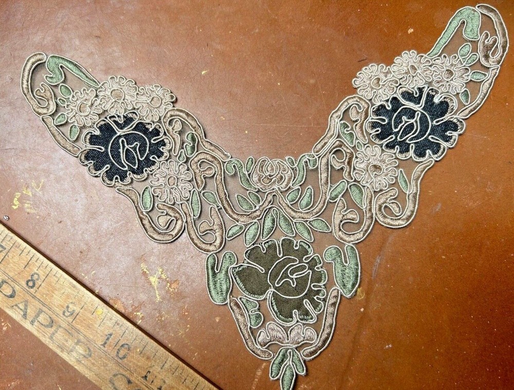 LAST ONES!!! This listing is for one Embroidered Soutache Denim Collar From old stock Measures: 7.5x9.25x11 across Do visit my Ebay store for more CUFFS-COLLARS-YOKES Also Studio Clearance Sale Ebay Store: trimsandribbons Ebay Seller: trims-n-treasures Instagram: linagallthetrimmings trimsandribbons.com I DO COMBINE SHIPPING on Multiple Purchases to Lower Shipping Costs. Please request combined Purchase order before making payment WE SHIP WORLDWIDE HOW TO REQUEST AN INVOICE: At the top of the eBay cart, above the items at the very top right corner, there's a small box that says "Request Total" Then at the very bottom of all the items, this time its on the left corner, it says to submit, once that box gets clicked on then it comes to me.