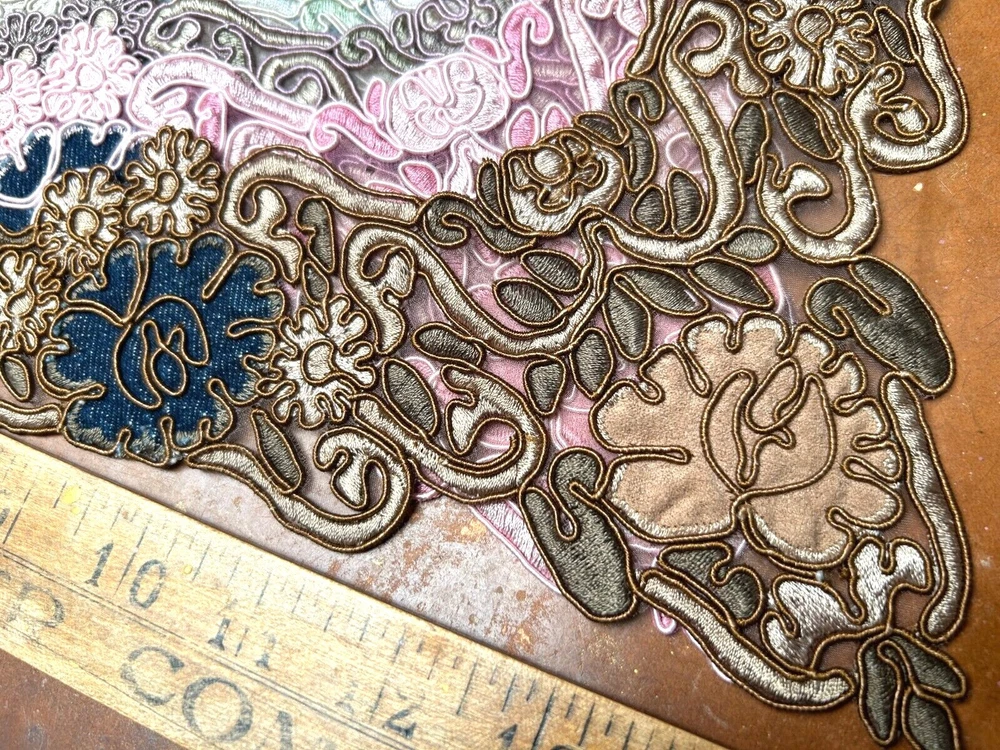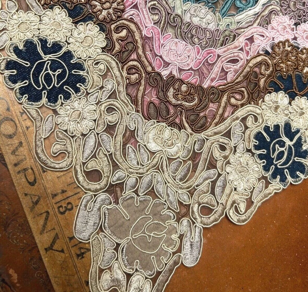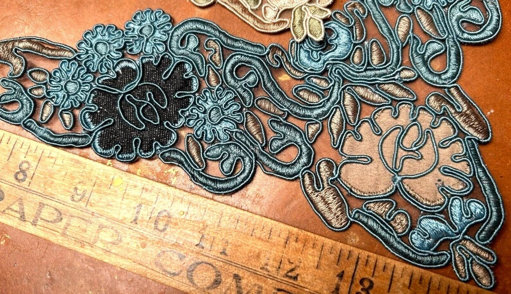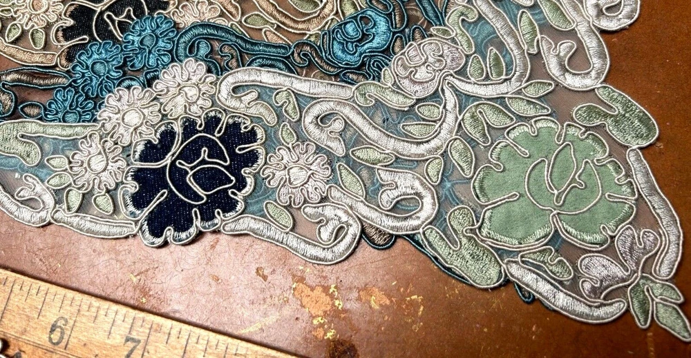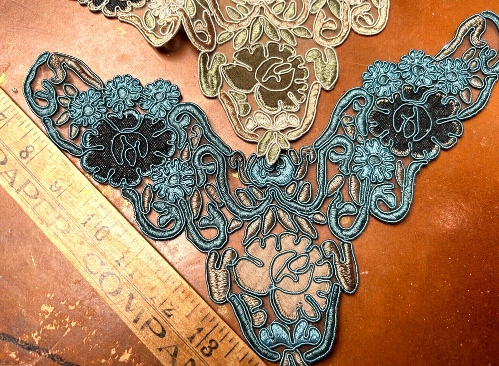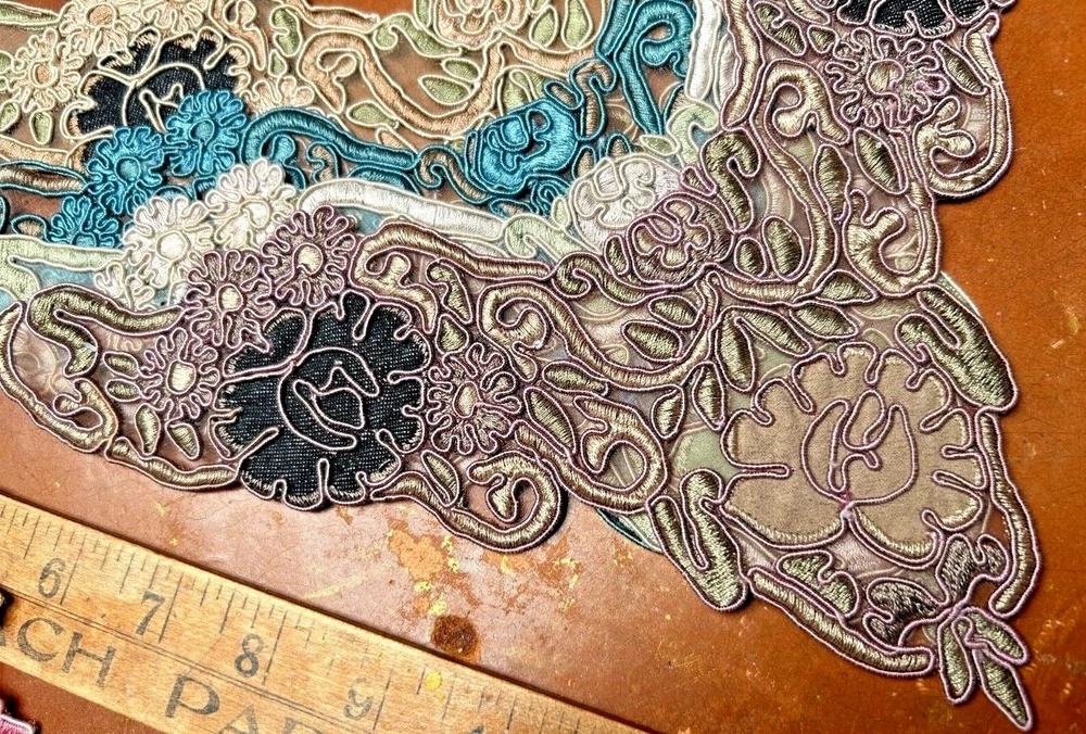 LAST ONES!!! This listing is for one Embroidered Soutache Denim Collar From old stock Measures: 7.5x9.25x11 across Do visit my Ebay store for more CUFFS-COLLARS-YOKES Also Studio Clearance Sale Ebay Store: trimsandribbons Ebay Seller: trims-n-treasures Instagram: linagallthetrimmings trimsandribbons.com I DO COMBINE SHIPPING on Multiple Purchases to Lower Shipping Costs. Please request combined Purchase order before making payment WE SHIP WORLDWIDE HOW TO REQUEST AN INVOICE: At the top of the eBay cart, above the items at the very top right corner, there's a small box that says "Request Total" Then at the very bottom of all the items, this time its on the left corner, it says to submit, once that box gets clicked on then it comes to me.