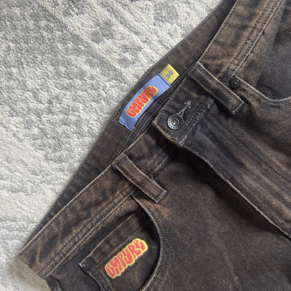 Stretched to a 32 but probably can fit 30 Approximate measurements Waist 32 Rise 12 Inseam 27 Length 37