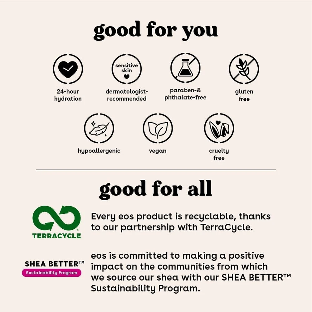 Free eBay listing template designed by dewiso.com eos Shea Better Body Lotion- Vanilla Cashmere, 24-Hour Moisture Skin Care, Lightweight & Non-Greasy, Made with Natural Shea, Vegan, 16 fl oz About this item VANILLA CASHMERE: Our sweet and nuzzly Vanilla Cashmere scent contains fragrance notes of whipped vanilla, soft musk and cozy caramel 24-HOUR MOISTURE FOR YOUR BODY: Soothe and protect your skin with our lightweight and non-greasy lotion. No sticky residue or heaviness, just all-day hydration and smooth skin. SMOOTH ON: Apply liberally to just-cleaned skin -- we'll do the rest. Pro tip: For an enhanced experience, layer this body lotion with your favorite fragrance SUSTAINABLE SKIN CARE: Protect and moisturize your skin with 7 nourishing oils + butters, including natural shea butter and shea oil. Our collection of incredible fragrances will delight in application and last all day on skin ALL-NATURAL SHEA BUTTER: eos products have wild grown, sustainably-sourced 100% natural shea butter to make skin feel moisturized, protected and soft. We are paraben, phthalate and gluten free. Dermatologist-recommended. Vegan. Hypoallergenic. Cruelty-free. Features and further details After the benefits you can follow up with an overview of the features and (technical) details. A great source for a the required product information are other websites like Amazon. Aim to add value to your description! Additional Features: Lorem ipsum dolor sit amet, consetetur sadipscing elitr, sed diam nonumy eirmod tempor invidunt ut labore et dolore magna aliquyam erat. labore et dolore magna aliquyam erat. Details: Lorem ipsum dolor sit amet, consetetur sadipscing elitr, sed diam nonumy eirmod tempor invidunt ut labore et dolore magna aliquyam erat. labore et dolore magna aliquyam erat. Package Includes: Lorem ipsum dolor sit amet, consetetur sadipscing elitr, sed diam nonumy eirmod tempor invidunt ut labore et dolore magna aliquyam erat. labore et dolore magna aliquyam erat. Contact us We can be contacted at any time through eBay messages if you have any questions, comments or product requests. We will respond to you within 24 hours and do our best to help you out! We encourage our customers to contact us with any questions or concerns! We'd like to be sure you are completely satisfied with your purchase. EZYMARK