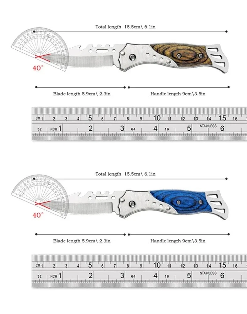 folding knife pocket knife Spring open Assist survival hunting tactical knife Specifications Hign-concerned Chemical none Spring Force no Lock no Sharp Blade YES Full Length 15.5cm Handle Length 9cm Blade Angle ≤60° Type Folding Blade Knife Origin Mainland China Blade Length 5.9cm Handle Material wood Brand Name LANG DUN Blade Material STAINLESS STEEL DIY Supplies Woodworking Specifications: Material: High-grade Stainless Steel Design and Style: Tactical, Survival-Oriented Usage and Purpose: Outdoor Camping, Hiking, Adventure, Self Defense, EDC Typical Adaptive Scenario: Wilderness Survival, Emergency Rescue Shape and Size: Compact, Foldable, Portable Performance and Property: Durable, Sharp, Corrosion-Resistant.
