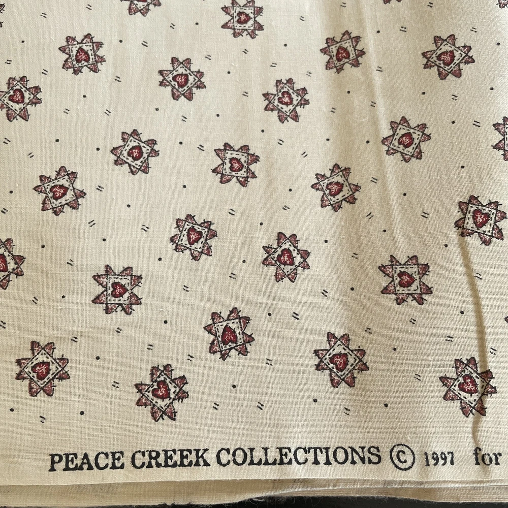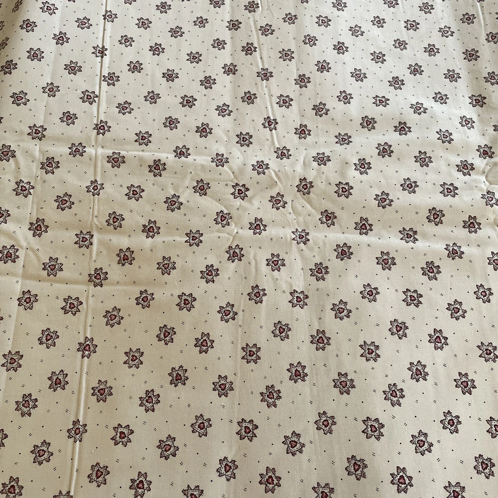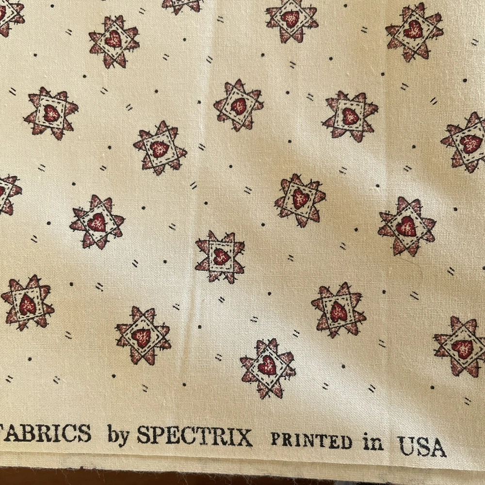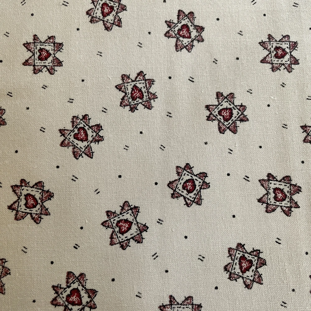 folk country Cream mini red quilted heart print peace creek Spectrix 2 yards. comes as 2 yards; 72". if multiple quantities are bought fabric will be continuous.