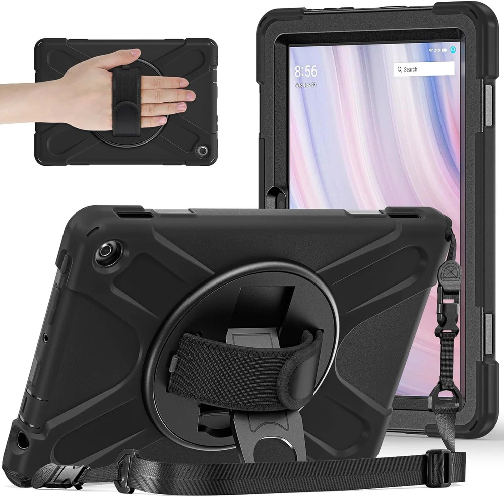 forFire HD 10 & 10 Kids Pro Tablet 10 2023, Black Product Details Brand: PboyiqiS Color: Black Compatible Devices: Fire HD 10 2023 Form Factor: Case Shell Type: Soft ◆◆◆【Full Body 3-Layer Protection】 Three layer structure design, providing full body protection prevent from drops, shocks, bumps, scratches and dirt. No worry your Fire HD 10 would slip out of your kids' hands and break. Full access to all ports, buttons and cameras without removing the case. ◆◆◆【Amazing Mul-tifunction Handle-Kickstand】The 360 Degree rotating Kickstand provides multi-angle viewing, offering a pretty convenient use experience for film watching, working and typing. The stand is stable enough on several different surface. Open as a comfortable handle for gripping and carrying. ◆◆◆【Removable & Adjustable Carrying Strap】 Portable Shoulder Strap allows to carry your Fire HD 10 conveniently when you are at work, on a trip or outdoors. You could even hang it behind the head rest of car seat or wherever you want. ◆◆◆【Friendly Kids Case】 Made entirely of kid-safe and non-toxic EVA foam rubber material, Material can withstand considerable wear and tear and provide extreme shock protection,Super light weight and durable hazard free safe material perfect for kids and grownups alike. ◆◆◆Compatibility ◆Designed for Fire HD 10 13th Generation 10 inch 2023 Release. ◆Designed for Fire HD 10 Kids 13th Generation 10 inch 2023 Release. ◆Designed for Fire HD 10 Kids Pro 13th Generation 10 inch 2023 Release. ◆◆◆Rugged Shockproof Case for Fire HD 10 2023 ◆ 360° Rotating Kickstand can provide a stable support ,infinite viewing angle and free your hands. ◆The folding handle is perfect for slippery fingers to grip and carry. ◆◆◆HIGHLIGHTS ◆Easy for life on the go The folding handle is perfect for slippery fingers to grip and carry. The folded handle will not make the whole case too bulky to put in a backpack of the usual size. ◆360° Free Rotatable/Multi-angle Kickstand Rotatable stand supports landscape and portrait mode and comfortable typing angle. The 360 Degree rotating Kickstand provides multi-angle viewing, offering a pretty convenient use experience for film watching, working and typing. ◆Adjustable & Detachable Carrying Strap Portable Shoulder Strap allows to carry your tablet conveniently when you are at work, on a trip or outdoors. You could even hang it behind the head rest of car seat or wherever you want. ◆Drop Protection Reinforced Drop Protection. High-performing impact materials. The raised edge and 4 corners protection design can maximize protect your tablet, against accidental drops, shocks, and scratches.