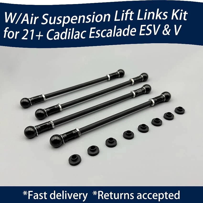 for Cadillac Escalade ESV & Escalade V Fifth generation (2021) GM T1XL Adjustable range of 0-2 inches, used to raise vehicle height *Note: Not applicable to steel springs - only applicable to air suspension Most high-end models are equipped with air suspension or ABC su spension, relyi ng on sensors to adjust the height. By replacing fixed l inkages with adjustable designs, computers can believe that the car is higher than the actual height and adjust the height accordingly. Our settings retain all factory system functions, including sport mode and ride height buttons. Adjustable settings to m aint ain the original driving quality as much as possible Why pu rchase from us? ☑ . Global free shi pping, fastest shipping (usuall y on the same day) ☑ . 30 day return, dama ged or lost items nee d to be reissu ed. (Free delivery) ☑ . A detailed and easy to understand step- by- st e p insta llation man ual, includi ng illustrations and error prone points. (Enable you to quickly instal l ) ☑ . The uniqueness lies in the upgraded product being made of high-quality aluminum alloy, which is 10 0% rust proof and lightweight. The connecting rod ball seat is coated with high-quality lubricating grease and equipped with inner and outer spring clips to ensure a tight fit. It is also equipped with a sealing sleeve to provide sealing, long service life, and prevent the risk of jamming. (We no longer use cheap galvanized coated metal steel to manufacture connecting rods that will rust and corrode. Magnets can be used to test the authenticity of the material) ☑ . Having been engaged for many years, familiar with various car models. Many vehicles worldwide have already been installed F requently asked questions about links: 1. No need to cut the wiring harness. Cheaper than electronic modules. No longer requires software reprogramming 2. It can adjust the required driving height and the matching left and right heights. There will be no permanent modifications, installation is completely reversible, and it is easy to reinstall the factory link when warranty work requires it. The most important thing is that restoring the original factory only takes a short time. 3. Most installations take less than 1 hour, and in many cases, there is no need to remove the wheels or lift the vehicle onto the elevator. Anyone can follow the step-by-step installation instructions we provide. (Only common household tools are needed) 4. Unless adjusted to the limit of the factory system, it will not change the driving quality. 5. The focus of optimization means better handling and aesthetics. In addition, if you haven't seen your vehicle, please feel free to contact us for customization. Remember to recommend to friends that there are many brands and models available, as well as other kits to choose from. If your business owner can customize in large quantities, please feel free to contact us.