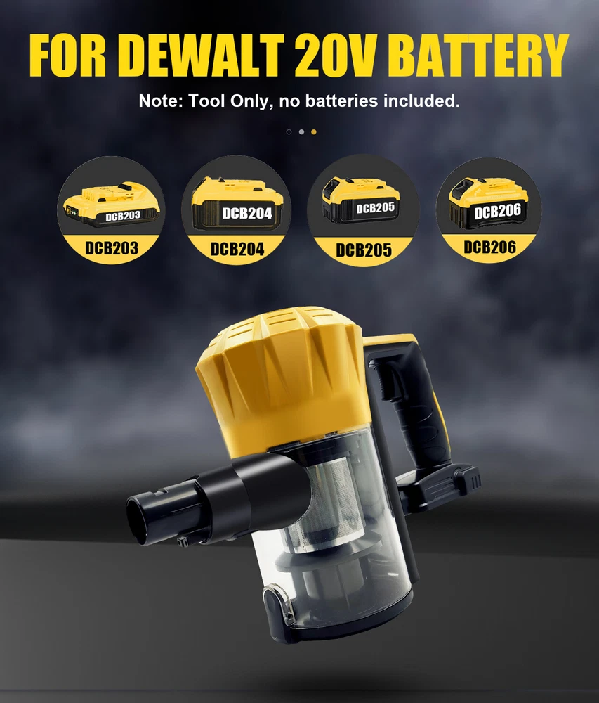 for DeWALT 20v Cordless Vacuum Cleaner Lightweight Stick Vacuum w/Max Battery US Product Content: 1xCordless Vacuum Cleaner with accessories 2x Battery 1x Charger Feature: 【Powerful Suction Ergonomic Design】This cordless vacuum is equipped with 400W high-power motor and provide 30KPa super suction,which easily clean pet hair,paper scraps,dust,crumbs,and sand etc.,makes cleaning a breeze!Ergonomic design helps you reduce hand pressure and use it with less effort. 【Battery Powered Vacuum】The cordless stick vacuum compatible with De-Walt 20V battery, suitable for DCB200 DCB201 DCB203 DCB204 DCB205 DCB206 and more.We focus on reliable tools, provide for Dewalt power access solutions, stay away from inferior and dangerous batteries, and if you already own DW batteries and chargers, you will avoid unnecessary expenses. 【3-in-1 Vacuum Cleaner】The portable vacuum features 3 suction nozzles and 2 extensible tube,which can be assembled into two models. Mode 1: Handheld Cordless Vacuum Cleaner,which is suitable for cleaning kitchen,sofa,keyboard and car. Mode 2: Detachable Pusher Vacuum Cleaner,which can be moved freely to clean hard-to-reach spaces.Ideal choice for and car cleaning and home. 【Efficient Long Lasting】With flexible 180° swivel floor brush,which is easy to clean all around the corner of furniture.Featuring a 600ML capacity dust collection cup,transparent can monitor fill levels effortlessly,so you can clean more in one go.The washable filter helps to maintain the decent suction and efficiency of this powerful vacuum. 【HEPA 3.0 Filter Container】Portable vacuum cleaner has a dual filtration system. The removable washable HEPA can effectively capture particulate matter, including pet dander, ensuring cleaner and healthier air in your home. It is paired with a 600ml removable garbage container to keep your daily cleaning made easy. In one package, we already have one filter installed in the machine, and at the same time configure two filter additional ones. 【LED Light Design】Handheld car vacuum has bright LED system,no more worries about being cleaning in a dark corner or at night.If you encounter any problems about the portable vacuum,please feel free to contact us,we will offer a free replacement. Payment Delivery details Terms of sales About us Contact us Payment 1.We accept PayPal only! 2.Please keep the consistency of the address from Paypal and eBay. 3.Payment must be received within 3 days since you won the item, or eBay will launch Unpaid Reminder Against you. Delivery details Sincerely thank you for choosing us, we suggest you reading our shipping terms and conditions. 1.All items are shipped within 1-2 business days from our US warehouse after we confirm your payment and your shipping address .Pls Kindly noted that it will be change the depend on the Domestic handling time.(except Saturday, Sunday and other US holidays) 2.We only ship our items to the areas that our logistics provider covers. Due to stock status and time differences, we will choose to ship your item from our first available warehouse for fast delivery. 3.To ensure you receive item safely, please offer the concrete and complete shipping address,Please keep the consistency of the address from Paypal and eBay. 4.Sometimes your order may be impacted by extreme bad weather, strikes or other unexpected events. 5.If there are any problems with your order, including late delivery or being lost, please do not hesitate to contact us. We are happy to offer solutions to your inquiries.Our goal is customer satisfaction! Terms of sales 1. If you are satisfied, we sincerely hope that you can leave us a positive feedback and 5-star Detailed Seller Ratings, which are of vital importance to the growth of our company. 2. Besides, PLEASE DO NOT leave us 1, 2, 3 or 4-star Detailed Seller Ratings because they are EQUAL TO negative feedback. Like we said before, if you have any questions, please contact us first coz disagreement cannot settle problems. We really appreciate your support! 3. We Strive for Five Star 5/5 detailed rating positive feedback. If for any reason you are not satisfied please give us the opportunity to resolve the issue before leaving feedback or opening a dispute on Paypal or Ebay. Thank you! About us As a retailer on eBay, we sell multi-category products, such as clothing, accessories, tools, etc.. Our products are supplied from reputable manufacturers to ensure product quantity and product safety. Meantime ,our price is dominant in the market and we can attract a large number of repeat customers. As a reputable seller, we continuously improve our service quality, in order to reach 100% customer satisfaction. If you have any questions,feel free to contact us, we will reply to you in 24 hours Contact us If you have any question, Please no hesitation to contact us via ebay message, we will reply you within 24 working hours.