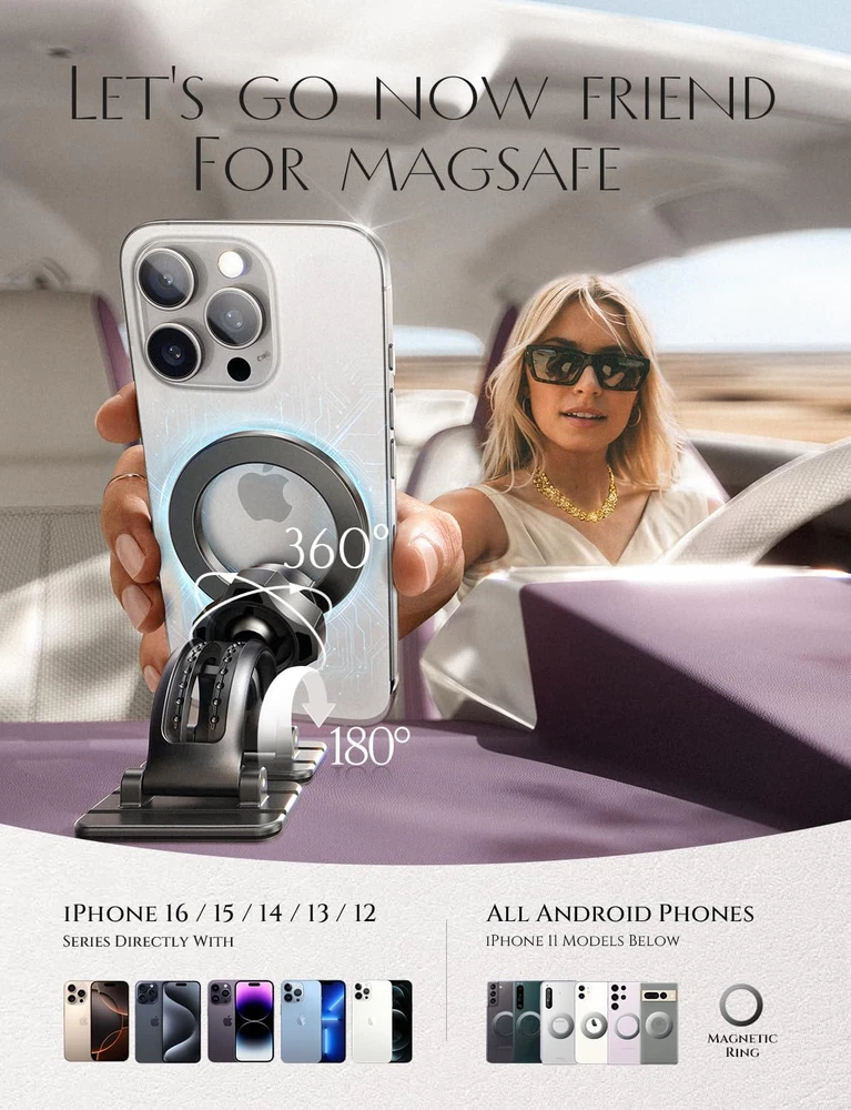 Store New Arrivals Add to Favorite View Feedback Contact Fast deliveries to the customer's home Quality customer service John Make the customers happy! for Magsafe Car Mount,360 Degree Rotation Dashboard Magnetic Phone Holder for Car, Hands Free Vent Iphone Magnetic Car Mount,Magnet Phone Mount for Iphone 16 15 14 13 12 Pro Max plus Mini,Black Description 【Most flexible installation】:2X Super 3M Bio-Substrate Adhesive,Adjustable design,perfect fit for all kinds of surfaces.Still worrying about not having the right place to install on the dashboard? Our product meets all your imagination for the mounting position, just a little space is needed for perfect installation. There is also a universal air vent clip hook, if you are not satisfied with the dashboard mounting, you can mount it at the air vent 【Designed for Magsafe】:The most fashionable iphone car mount in 2024 Magsafe is designed for iphone 16/15/14/13/12 Pro Max Mini and official Magsafe cases and other magnetic phone cases and can be fixed directly to these phones without the need to affix metal plates. All Android Phones Will Work: Metal rings are provided; they fit cases and other phones without magsafe 【MORE STABLE】:Magnetic phone car mount that has the strongest magnet force, which can hold up to 12 iPhone 15 Pro Max,The adhesive strength of this upgraded mag safe dash holder is over 66 lbs. The Bio-Substrate adhesive pad has gorgeous heat resistance and heat dissipation. Tested by LISEN laboratory, in an atmosphere of 122°F and -42°F, this car phone holder could not fall off with heavy things weighing 30kg for more than 72 hours. LISEN provides at least 1 years of user service 【360° FREE ROTATION】:This 360 degree rotation dashboard cell phone holder with an adjustable swivel ball joint, you can rotate your smartphone or device at your own will, providing the best viewing angle. Quickly pick and place with one hand, free your hands and make calls and GPS navigation more convenient 【OFFICIAL 1:1 MAGNET】The latest magnetic attraction force in 2025, designed specifically for official magsafe. Using the official technology of a completely tight closed-loop magnetic field, while ensuring strong magnetic attraction, it will not affect the phone signal and charging 【Doing Responsibly and Sustainably】: As a responsible company, Lisen operates sustainably, to high environmental and social standards. We continue to embed sustainability ever deeper in the way we do business – in our own operations and beyond, together with our suppliers. Lisen Phone Mount for car also comes with 16 months warranty. Our expert team always stands by your side Product Description Item model number -LK2M-BS Whats in the box 1* Magsafe Ring, 1* 1 year warranty card, 1* 3M adhesive cell phone holder base, 1* metal hook and clip cell phone holder base, 1* magnetic cell phone holder head Mounting Type NO.1 Magnetic Car Mount Color Black Product Dimensions 1.97 x 1.97 x 1.97 inches Compatible Devices Smartphones Item Weight 4.2 ounces Special features One-Hand Operation, Rotatable, Adjustable, Scratch Resistant Compatible Phone Models function(f) {var _np=(window.P._namespace("DetailPageProductOverviewTemplatesJava"));if(_np.guardFatal){_np.guardFatal(f)(_np);}else{f(_np);}}(function(P) { P.when('A').execute(function(A){ A.on('a:truncate:po-attribute-truncate-3:updated', function(data) { var isTruncated = !data.truncateInstance.getIfTextFits(); var seeMoreElement = document.getElementById('po-attribute-see-more-id-3'); if(seeMoreElement) { seeMoreElement.style.display = isTruncated ? '' : 'none'; } }) }); })); iPhone 16, 16 Pro, 16 Pro Max, 16 Plus, iPhone 15, 15 Pro, 15 Pro Max, 15 Plus, iPhone 14, 14 Pro, 14 Pro Max, 14 Plus, iPhone 13, 13 Pro, 13 Pro Max, 13 Mini, iPhone 12, 12 Pro, 12 Pro Max, 12 Mini; iPhone mit MagSafe-Hüllen; Samsung Galaxy S22/ S22+/ S22 Ultra/ S21 5G/ S21+ 5G/ S21 Ultra 5G/ Note20/ S20/ S20+/ S20 Ultra 5G/ Note10/ Note10+/ S10/ S10+/ S10e/ S9/ S9+/ S8/ S8+/ Note 8/ S7/ S7 Edge/ S6/ S6 Edge/ S5/ S4, Google Pixel, LG Oneplus Nokia Sony, HTC, etc. See more ABOUT US We offer the best prices around on high quality products. Our E-store includes media such as books, movies, music and games while offering electronics, toys, sporting apparel, clothing, tools, general home, garden items and more. SHIPPING We are always working hard to ensure your package arrives as soon as possible. Please understand that some factors like weather, high postal traffic, and the performance of shipping companies are outside of our control. We offer free shipping to the lower 48 states and ship within 2 business days of payment, usually sooner. We do not accept P.O. Boxes. Please provide a physical address. For shipping outside of the continental USA, we only use eBay's Global Shipping Program. The item is shipped to KY and then sent to the rest of the world. International customers are responsible for all duties and taxes. Continue to 'check out' to calculate costs for shipping the item to your country. Messages regarding eBay's Global Shipping Program MUST be directed at eBay EXCLUSIVELY. RETURNS We offer a 30-Day Return Policy on items in which you are not completely satisfied with. You have the option of a full-refund or an exchange of the item. No returns are available on items shipped outside of the USA PAYMENT We accept PayPal. CONTACT US This page content is yet to come Please ad us to your favorite seller and visit again later Thank You CUSTOMER SATISFACTION We try our very best to make sure every customer is completely satisfied. If there's a problem, message us! We're happy to help. WE ACCEPT
