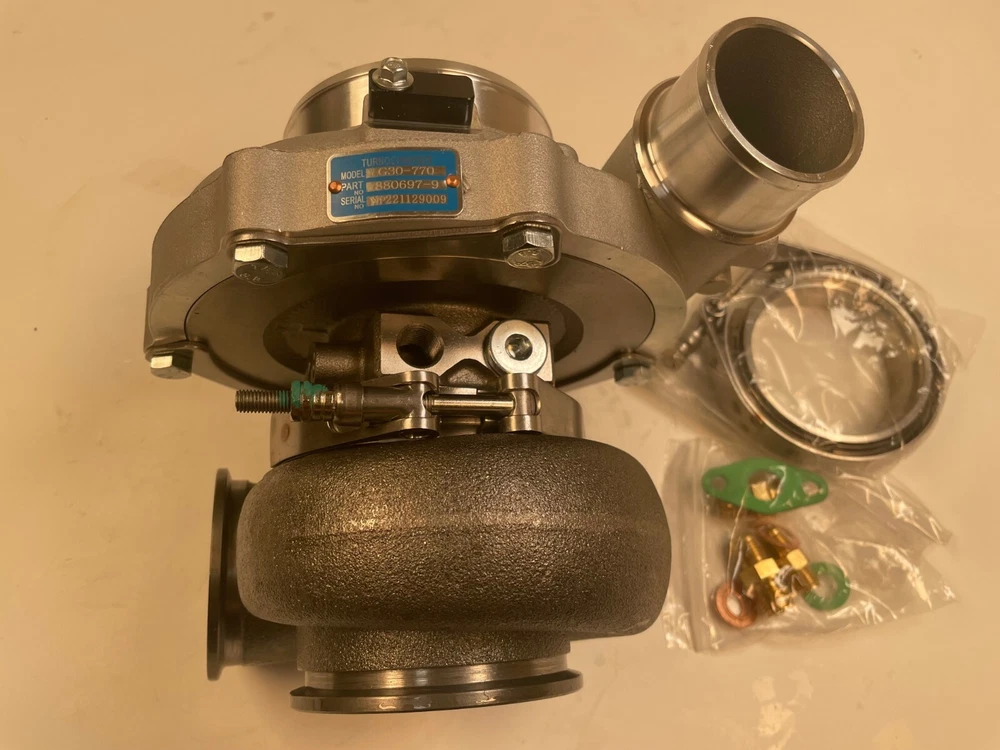 Turbo model for G-Series G30-770 770770G30-770AR83-V-band horsepower:475-770HP Fit engine displacement 2.0-3.5L 9 blades Point billet compressor wheel bearing type:Ceramic Dual ball bearing cooled type:water and oil cooled oil restrictor & water fittings included Includes Oil Feed (1mm) Restrictor Fitting to -4AN Includes two Coolant Fittings to -6AN Includes Turbine Housing Outlet V-Band Clamps Refer Part #: 880697 Compressor details a/r 0.72 anti-surge air inlet 4" air outlet 2" inducer 57.56mm exducer 71.40mm Compressor Trim: 65 Turbine details a/r .83 Turbine Housing Inlet: 3 Inch O.D. V-Band Turbine Housing Outlet: 3.55 inch (90mm)O.D. w/81mm centering ring V-Band inducer 60.00mm exducer 54.98mm Turbine Trim: 84 ****************Very Important Points******************* 1.Please make sure to open the box immediately when taking delivery, to avoid any potential issues Do NOT sign for any damaged package and report it to the couriers immediately, let the couriers sign for damage, then Contact us please! We will work with the couriers to solve shipping issues. 2.we can accepet customized order!more products you order, the price will be nice.