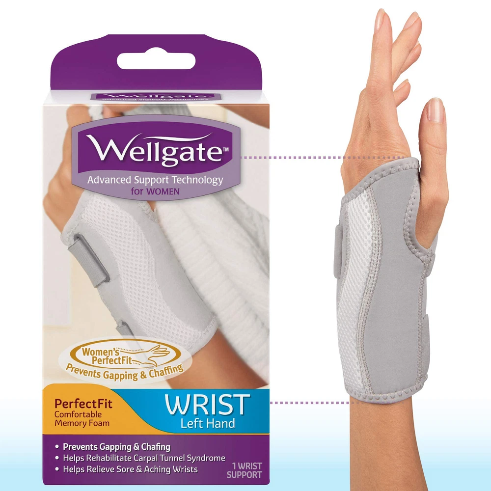 ™ PerfectFit Women’s Wrist Brace for Wrist Support is the solution for women suffering from carpal tunnel syndrome, weak, sore, aching, or injured wrists. The wrist brace helps to relieve pain and support wrist recovery. The wrist brace is also ideal for general rehabilitation and provides intensive comfort throughout the day or night. The wrist brace is the answer for women in any setting, whether that be in the office, exercising, or sleeping. The wrist brace is specifically designed to fit the shape of a woman’s wrist and hand and to function according to a woman’s body mechanics. The PerfectFit design helps prevent gapping and chafing and the open finger design provides optimum range of motion. The advanced support technology in the hand brace helps relieve sore and aching wrists. The breathable fabric and adjustable straps allow for an easy -handed application without any trouble. The wrist brace acts as a wrist cushion as it is made with comfortable memory foam and soft, breathable fabrics to supply the ultimate for wrist pain. A comfortable wrist brace will bring the best to aching wrists. The wrist brace is a solution to help alleviate wrist pain. Size Group: Adjustable; Fits: Right Hand; Material(s): Fabric; Memory Foam; Color(s): Soft Gray; White. WRIST SUPPORT FOR WOMEN. for Women is the wrist brace made for women to provide comfort for sore wrists. The wrist brace fits most women and is available for both the right and left hands. The advanced support technology found within this wrist support brace helps provides the right amount of support and comfort during the day and night. ULTIMATE COMFORT. The memory foam provides everyday comfort in any setting. The wrist brace can be worn at work, home, or sleep to help provide ample nonstop wrist cushion comfort. The breathable fabric in the hand brace is perfect for women who need joint support while in the office, playing sports, or for general wrist strain CARPAL TUNNEL SYNDROME . The Advanced Support wrist brace is great for women who suffer from carpal tunnel and aching wrists. The brace may provide carpel tunnel , as well as from tendonitis. Tendonitis can cause stiffness and pain in the wrist, but ’s Perfect Fit wrist brace may help lessen the pain. The wrist support brace can also be used for general rehabilitation. The brace helps ease the pain and can be worn for day and night support. ULTIMATE DESIGN. The PerfectFit prevents gapping & chaffing and the design allows for -handed application. Simply slide your hand into the brace with the thumb going through the hole. Tighten the straps and you are set! The ease of applying the wrist brace allows for quick comfort without any fuss. ADJUSTABLE FEATURES. The adjustable velcro straps allow for the desired level of compression with ease, while allowing your wrist and hand to feel comfortable and relaxed. Because of its adjustable straps, the fit can be perfect for any size hand.