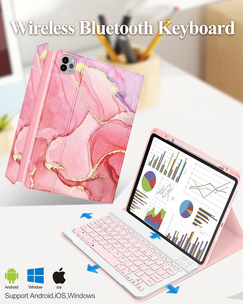 for iPad Air 13 inch Case 2024 M2, for iPad Pro 12.9'' Case with Keyboard Pencil Holder Folio Tablet Cover Women Girls Cute Kawaii Flower Art for Apple Air 11, Pro 12.9 Product Details Brand: Wazzasoft Compatible Devices: iPad Pro 12.9 inch 3rd/4th/5th/6th Generation, for iPad Air 13 inch (M2) Style: Pink Marble Manufacturer: Wazzasoft Detachable Keyboard: The detachable Bluetooth keyboard allows you to effortlessly switch your tablet between typing and tablet mode, perfect for on-the-go productivity, and is perfect for writing emails, reports, or catching up on work while you're away from your desk Built-in Pencil Holder: This for iPad Air 13 inch case 2024/for iPad Pro 12.9 3rd/4th/5th/6th generation case with pen holder can keep your Pencil secure and within reach with our dedicated pen slot to prevent loss or misplacement. So it's always ready for use and never lost Full-Body Protection: Our this for iPad Air 13 M2 case, for iPad Pro case 13 inch provides full-edge protection and comprehensive coverage to safeguard your tablet from drops and impacts, ensuring it remains in pristine condition, giving you peace of mind
