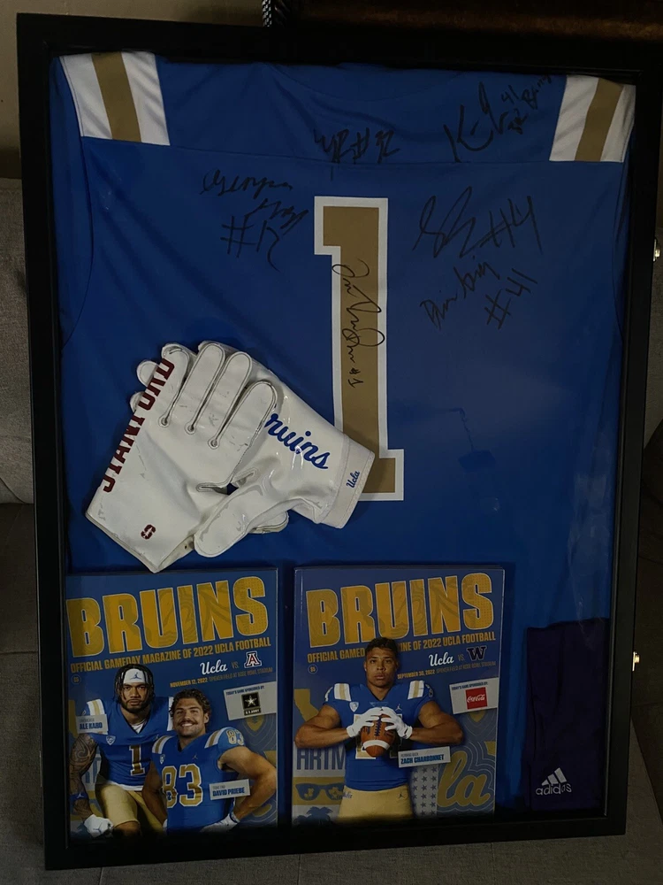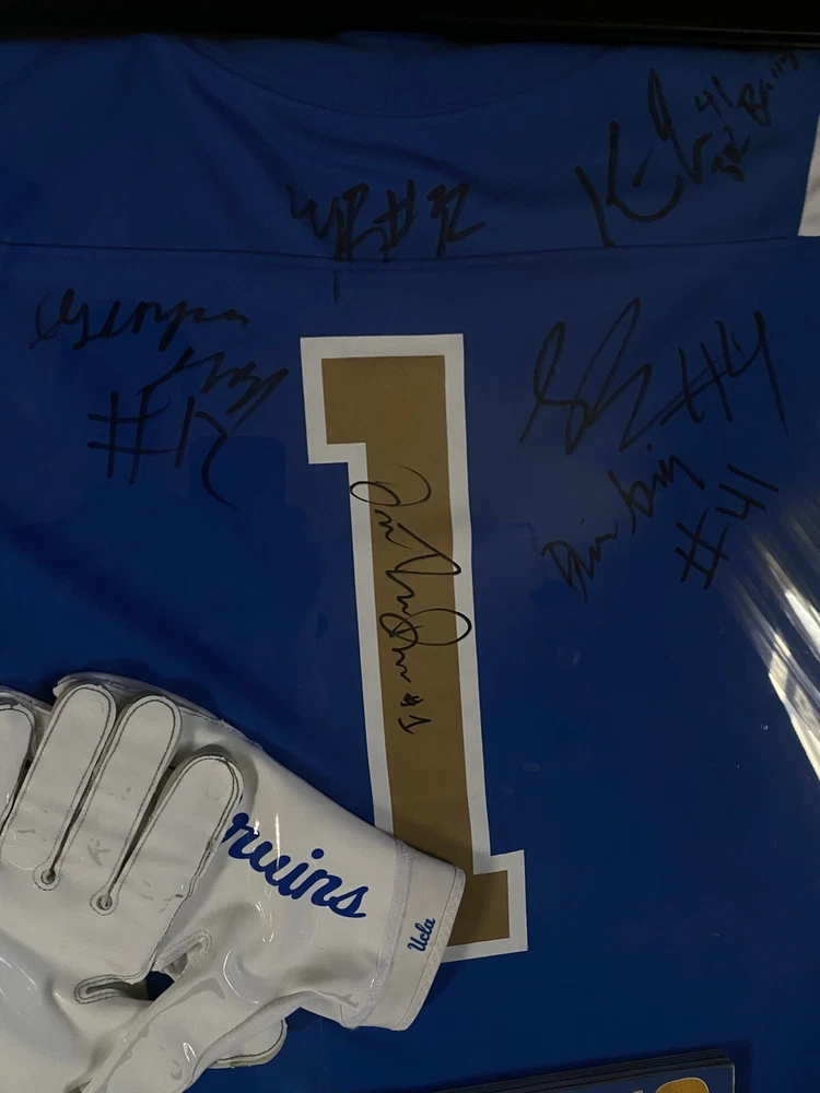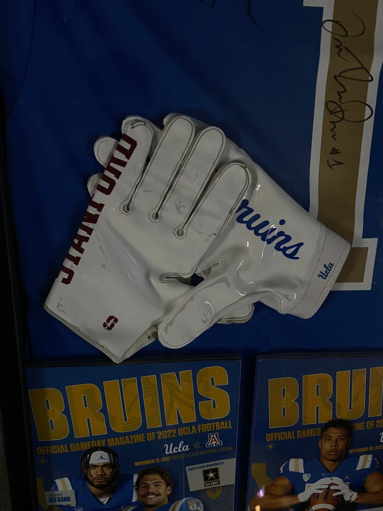 Game used football gloves and sleeve Gloves (UCLA) (Stanford) Sleeve (Washington)