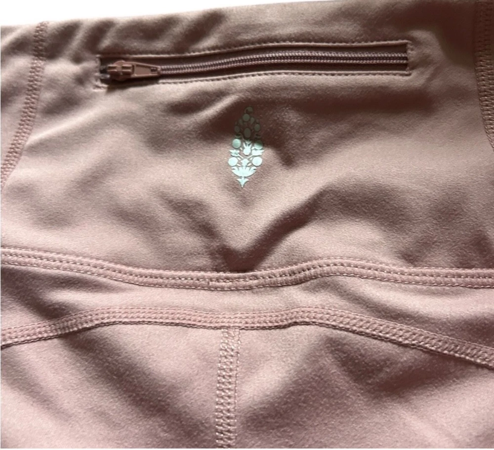 Free people movement leggings Size small Dusty pink color Crop length Ruche detail in the bottom Gentle use Back pocket