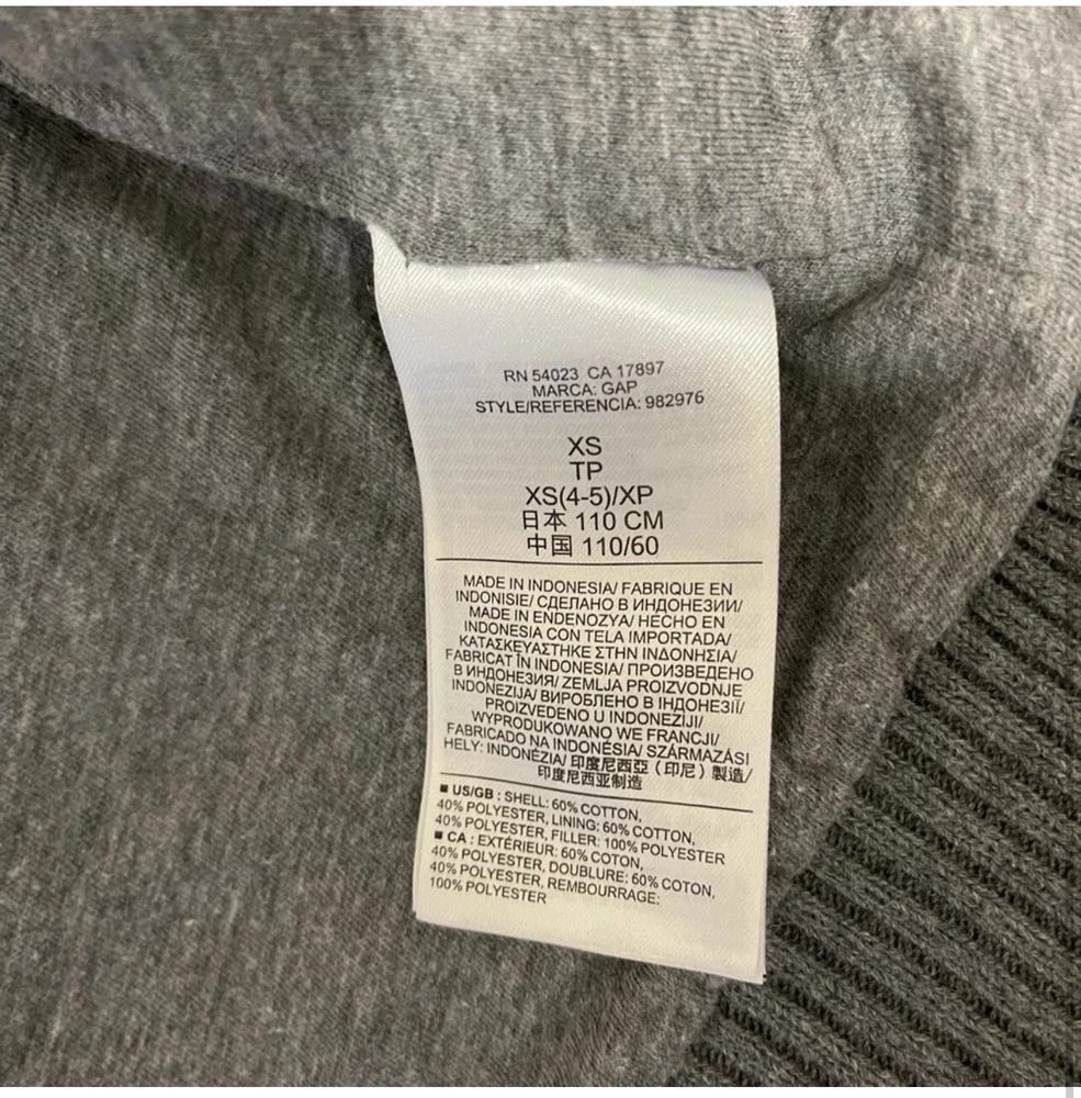 Gap kids grey cream bomber jacket. Great for fall and cold spring. Size XS. (4-5) Used. Good condition. Size runs small.