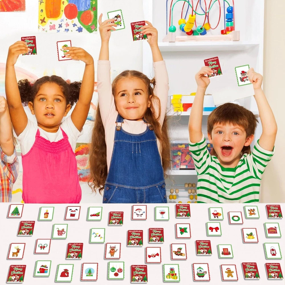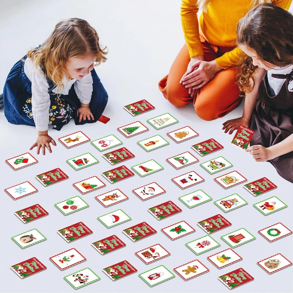gisgfim 50 Pairs Memory Matching Game Merry Christmas Concentration Memory Games for Kids Educational Ages 3-8 A Fun & Fast Christmas Winter Theme Memory Matching Games Product Details 100 matching cards: This memory matching game set includes 100 cards featuring 50 cute Christmas themed pairs, all neatly packed in a durable and stylish storage box. With clear designs and vibrant colors, these cute winter pattern offers a fun way for your child to enhance their memory skills while enjoying hours of entertainment. Perfect for engaging learning and endless fun! High quality: Each merry Christmas concentration memory games measures approximately 6 x 8 cm (2 x 3 inches), features smooth surfaces with rounded edges, making them perfect for small hands. Crafted from thick cardboard, these cards are durable and resistant to bending or warping. They come in a sturdy, reusable box that allows for easy and compact storage. Printed on both sides with eco-friendly plant-based inks and coated with premium film, the cards can be easily cleaned with a damp cloth. Attractive matching game: This fun & fast memory game features a fun matching game cute Santa Claus, Christmas tree and snowman patterns. It sparks children's curiosity, enhances their attention, and boosts memory skills while they play. Plus, playing with a group can help improve their communication and expression skills! Educational matching card game: This educational matching card game is a fun game set that helps children stimulate their thinking in simple games and exercise children's memory, attention and hand-brain coordination. Wide application: This fun & fast Christmas theme memory matching games is designed for both kids and adults, making it easy to understand and fun for everyone. It offers a challenging and competitive experience whether you’re playing solo, with friends, or as a family. With its charming cartoon designs, this versatile game is perfect for family gatherings, game nights, or classroom activities. It delivers an inclusive and educational experience for players of all ages!