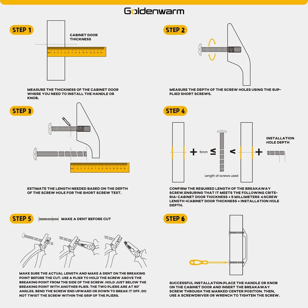 goldenwarm 5 Pack Black Cabinet Pulls 18 inch Drawer Pulls Kitchen Cabinet Handles Black Dresser Stainless Steel Modern Hardware MATERIAL:Black cabinet handles made of high quality Stainless Steel,they are hollow construction,lightweight but durable and anti-corrosive,can be used for many years. MEASUREMENT:Hole centers:458mm(18inch),Overall length:470mm(18-1/2inch),Width:12mm(1/2in),Thickness:12mm(1/2in).Please measure your cabinet HOLE CENTERS carefully and then decide which size is what you need. TOP QUALITY&REASONABLE PRICE:Our black pulls have smooth surface,that makes you feel comfortable in using, you don't have to worry about being scratched. use these our goldenwarm hardware to decorate your cabinets or update some old furniture,bring you a modern look.Very stylish and unique. PERFECT SERVICE: We will patiently answer you if you have any questions. If you are not satisfied with our item, please contact us and we would help you solve it better.Don't hesitate.Just buy it. PACKAGE INCLUDE:Pack of 5 black pulls with matched standard screws(1 inch & 1.57 inch).You can select the right size according to the thicknesses of the cabinet.Every pull is individually wrapped and bagged to protect the beautiful color Shipping We offer FREE shipping on all orders! We use a selection of shipping services such as UPS, FedEx, USPS etc. We only ship to the lower 48 states, no APO/FPO addresses or PO Boxes allowed. Local pickups and combined shipping options are not provided at this time. Return You can return a product for up to 30 days from the date you purchased it. Any product you return must be in the same condition you received it and in the original packaging. Please keep the receipt. Payment We accept payment by any of the following methods: PayPal Please pay as soon as possible after winning an auction, as that will allow us to post your item to you sooner! Feedback Customer satisfaction is very important to us. If you have any problem with your order, please contact us and we will do our best to make you satisfied. Contact Us If you have any queries, please contact us via ebay. We usually respond within 24 hours on weekdays. Please visit our eBay store to check out other items for sale! Thank you for shopping at our store.
