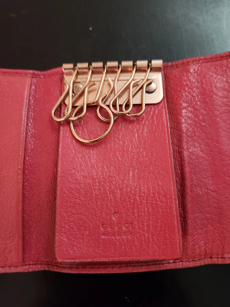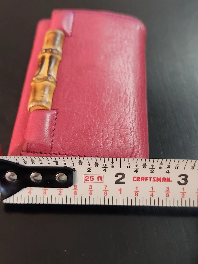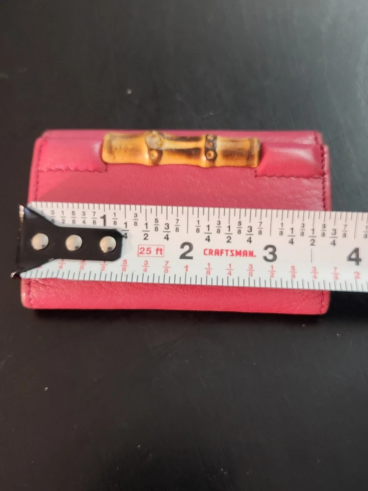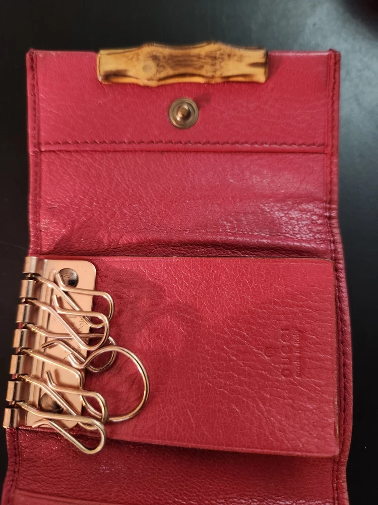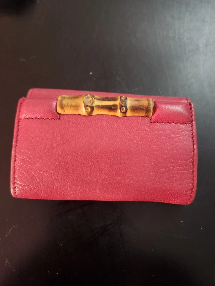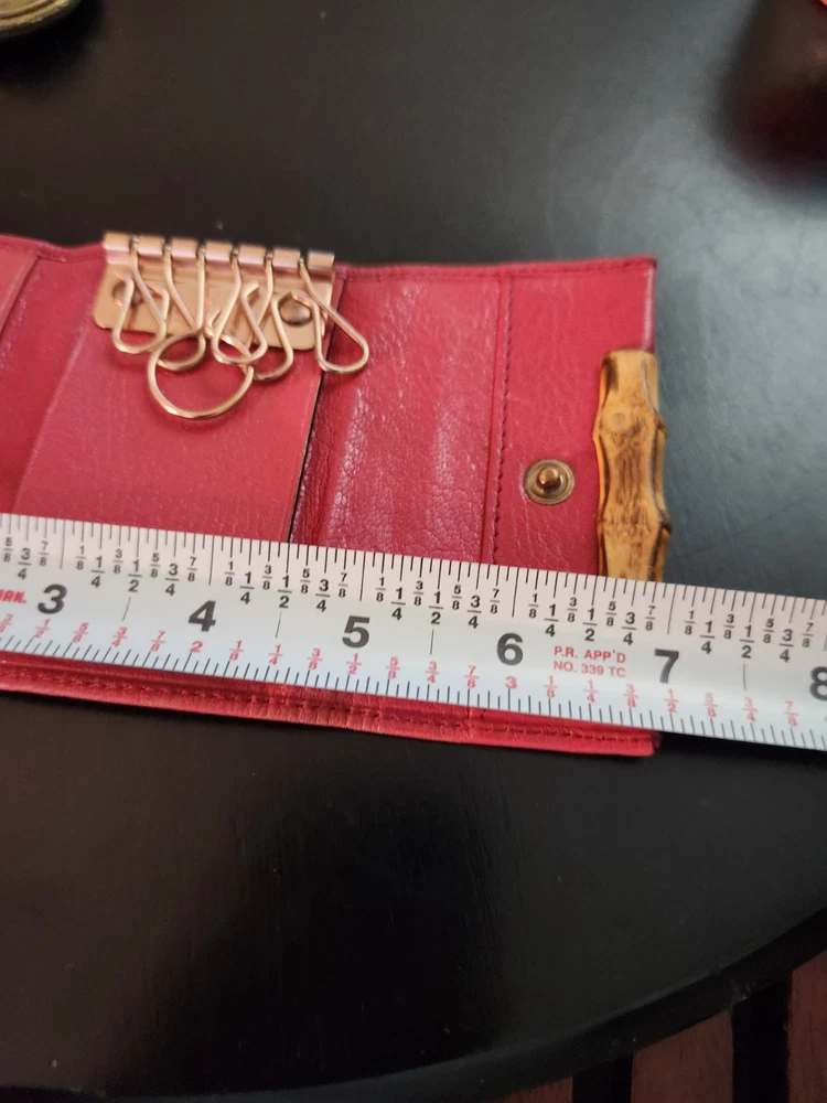 Vintage: Yes Item Length: 3, 3/4 Item Width: 2 , 1/2 Handmade: Yes Department: Women Material: Leather Theme: bamboo Style: folding Size: S Color: Red Brand: Gucci Type: key Holder pouch
