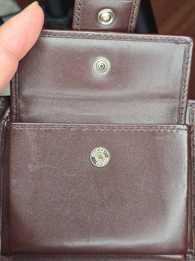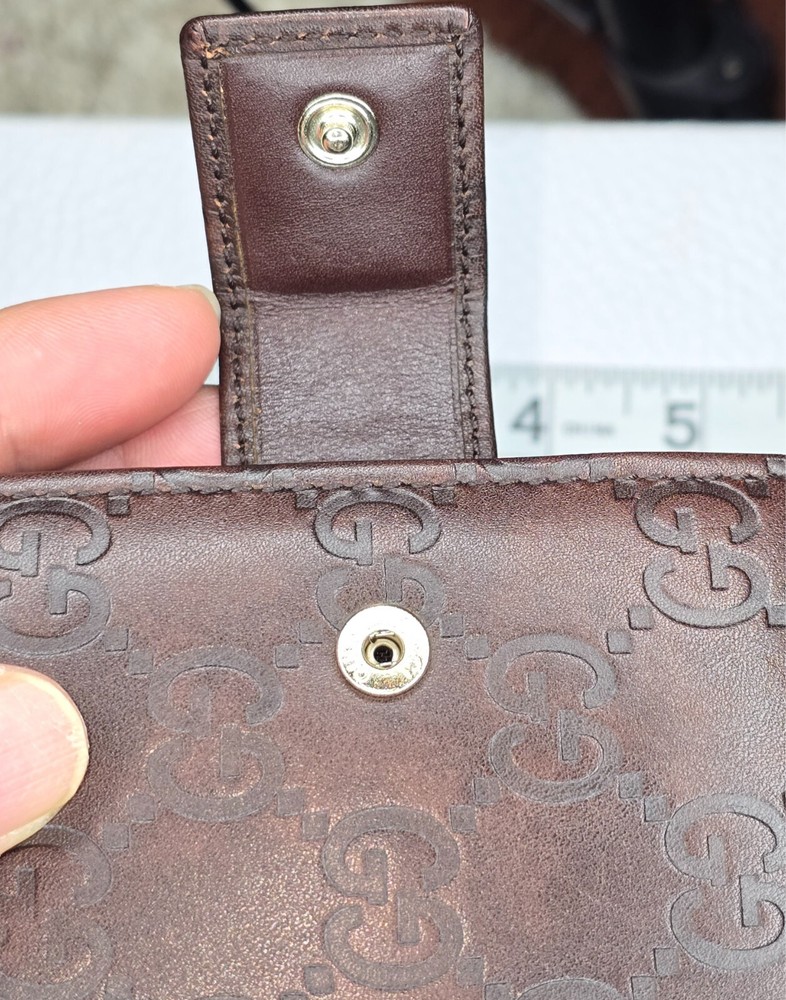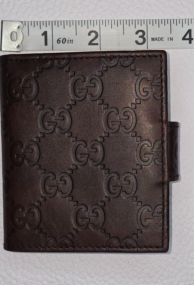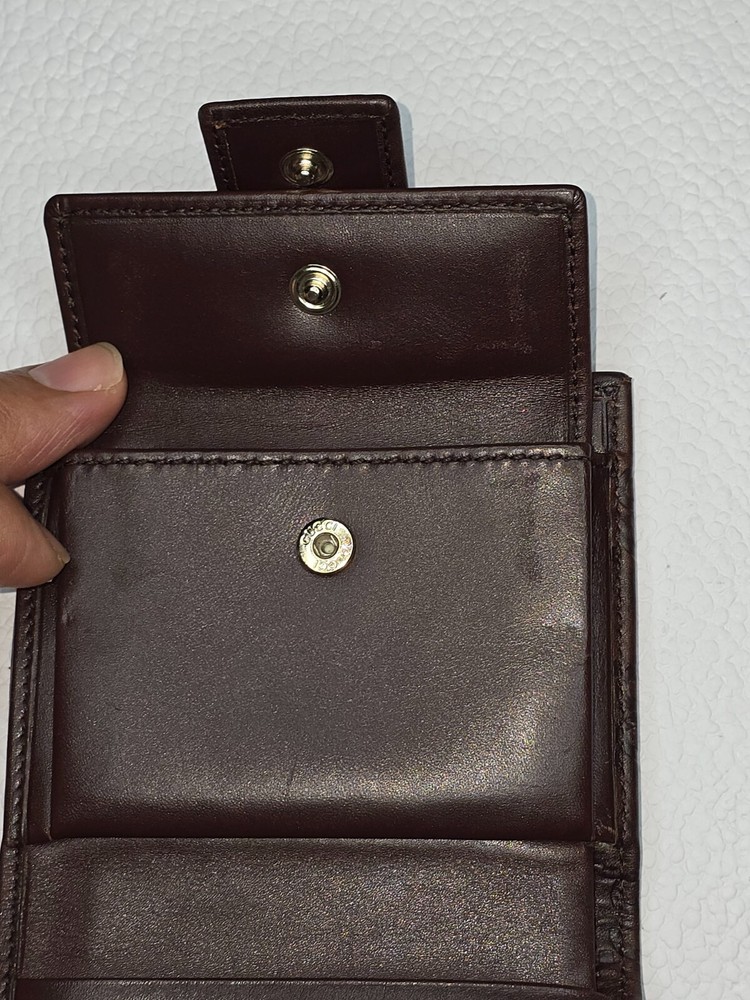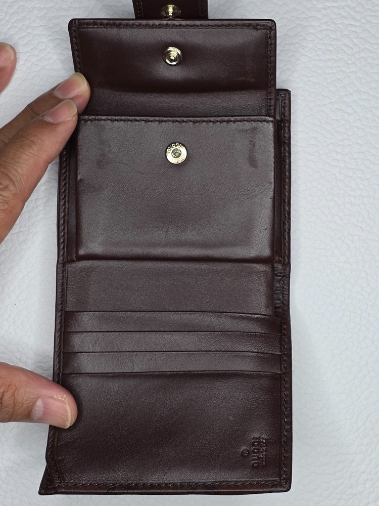 Gucci Guccissima Brown Leather WalletTab snap closure4 card slots and one bill compartmentCoin PacketConditions: very goodSlight scratches on coin compartmentPlease see pictures for detailsH3.5"XL4" open L7"Open to reasonable Offers Same day shipping