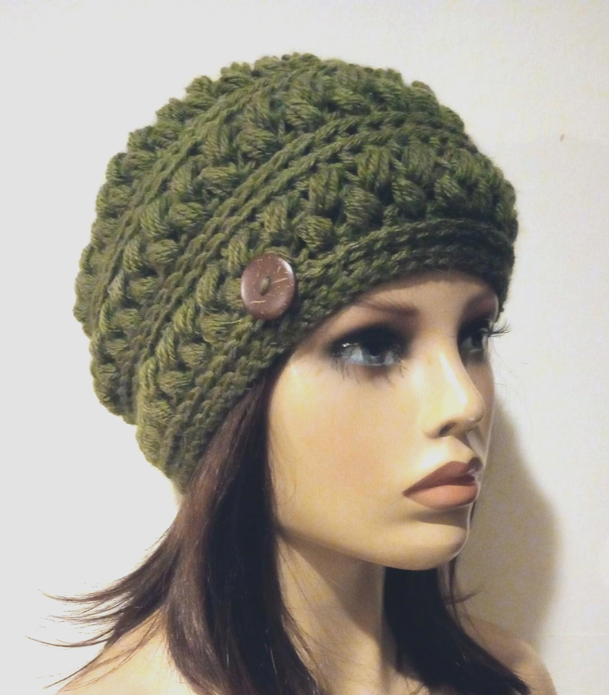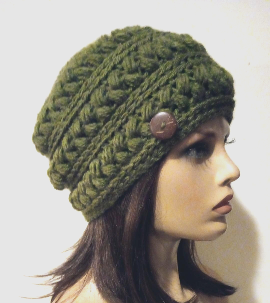 only one coupon or discount per item This beautiful handmade crochet beanie hat with a button accent is perfect for dressing up any outfit. Its one-size-fits-all design is made with high-quality material and features lovely puffs. The crochet detailing adds a touch of elegance and the hat is suitable for winter, fall, and spring seasons. The hat is ideal for women who love to accessorize and want to add a unique touch to their wardrobe. This is handmade with care in the United States, and the hat is perfect for those who appreciate vintage style but with a modern edge. This beanie hat is the perfect addition to any outfit, making it a must-have for any fashion-forward individual. measures about 22 inches around the head. the height is about 8 1/2 inches unstretched. hand crafted with an acrylic yarn. buttons may slightly vary Check out my other items