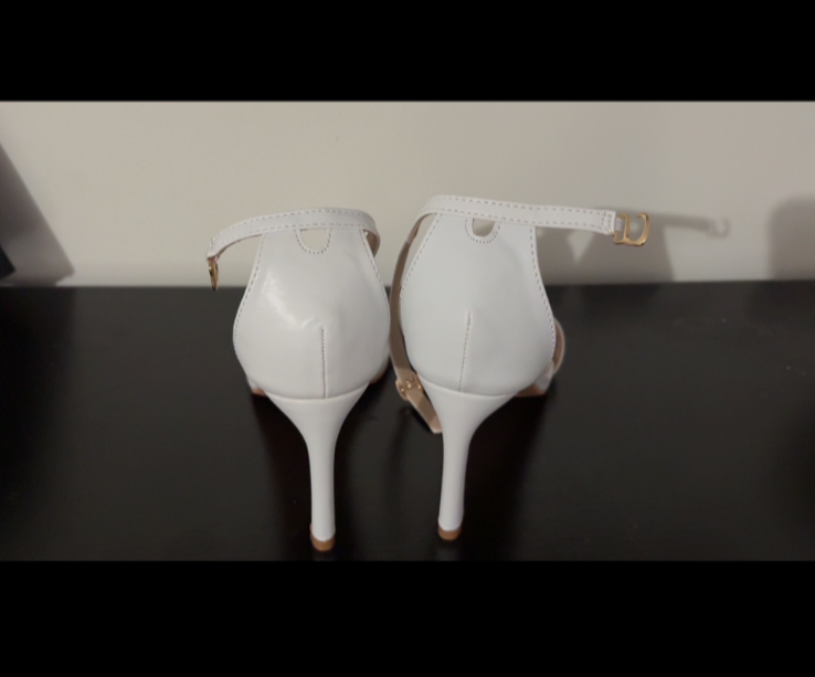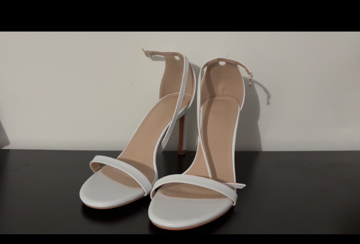 • {High heels, stiletto}~chic white open-toe, for women, with ankle strap, versatile, elegant European style • Label size 36 US size 6 foot length 9.1 inches foot width 3.3 inches shoe inner length 9.3 inches