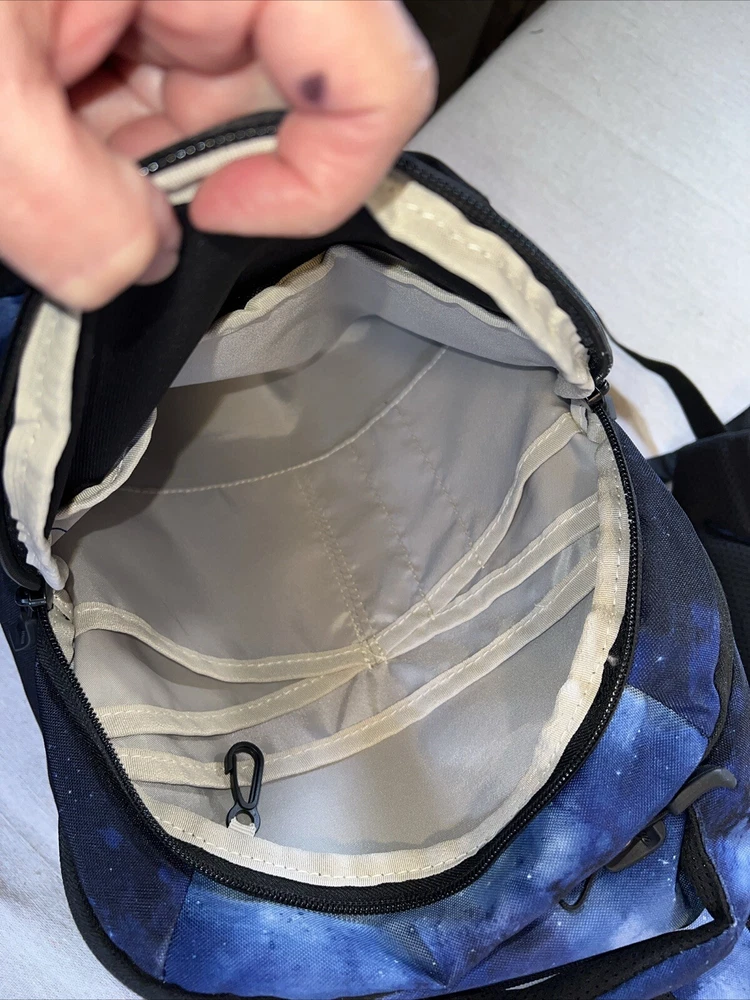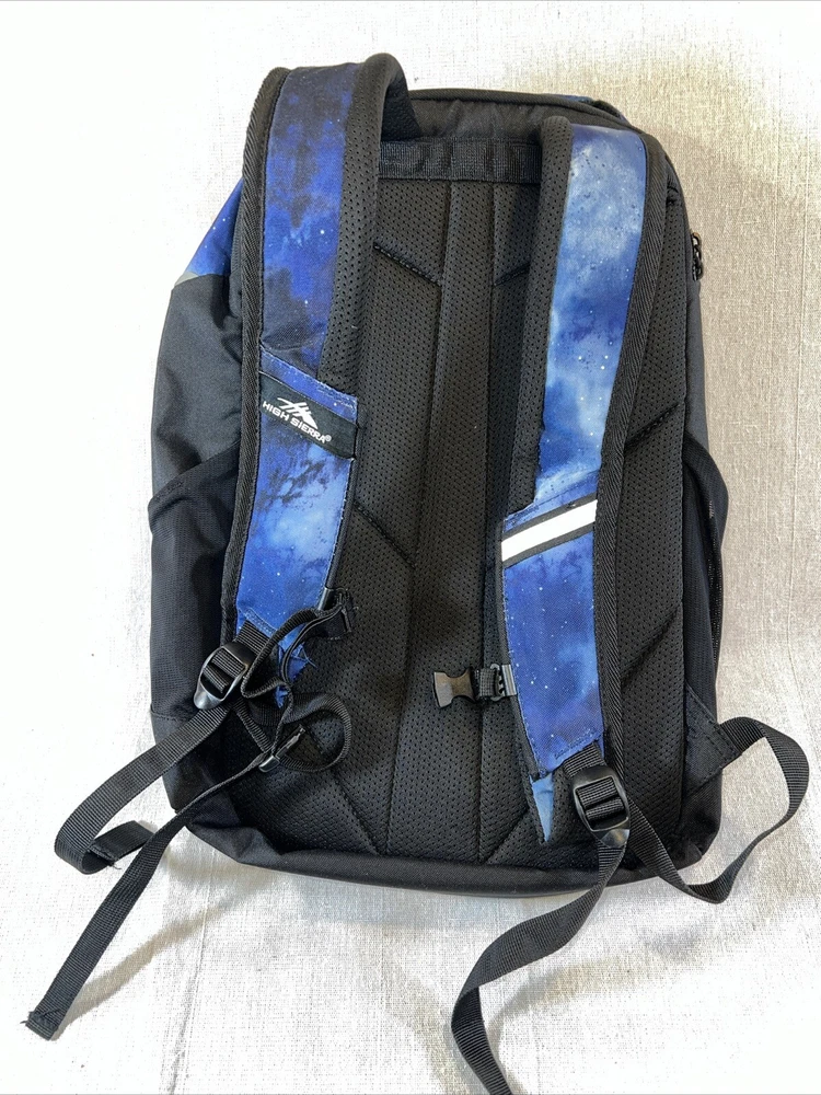 This High Sierra backpack in blue is perfect for your next backpacking or hiking adventure. With a zip closure, external and elastic pockets, and padded straps, this backpack is both convenient and comfortable to wear. It also features a water-resistant design to keep your belongings dry in case of any weather conditions. The backpack's capacity is unspecified, but it has plenty of room for all your essentials. The blue color adds a pop of style to your outfit, and the harness ensures that the backpack stays securely on your shoulder. Whether you're a seasoned hiker or just starting out, this High Sierra backpack is a great choice for your next outdoor trip. In good condition.