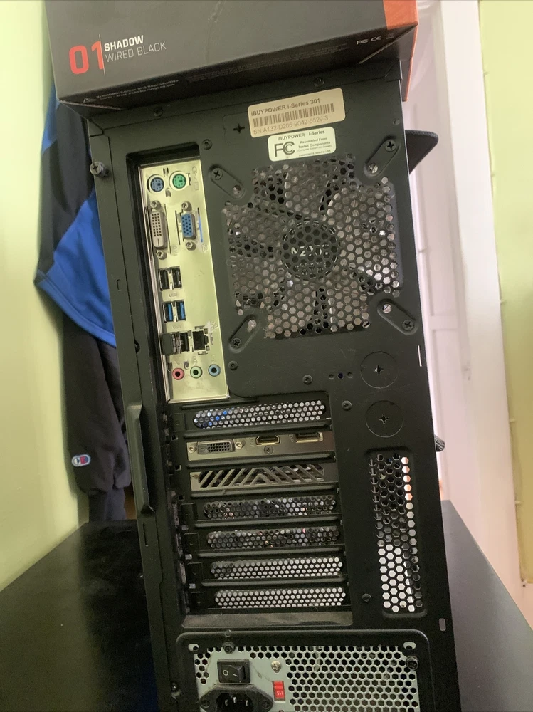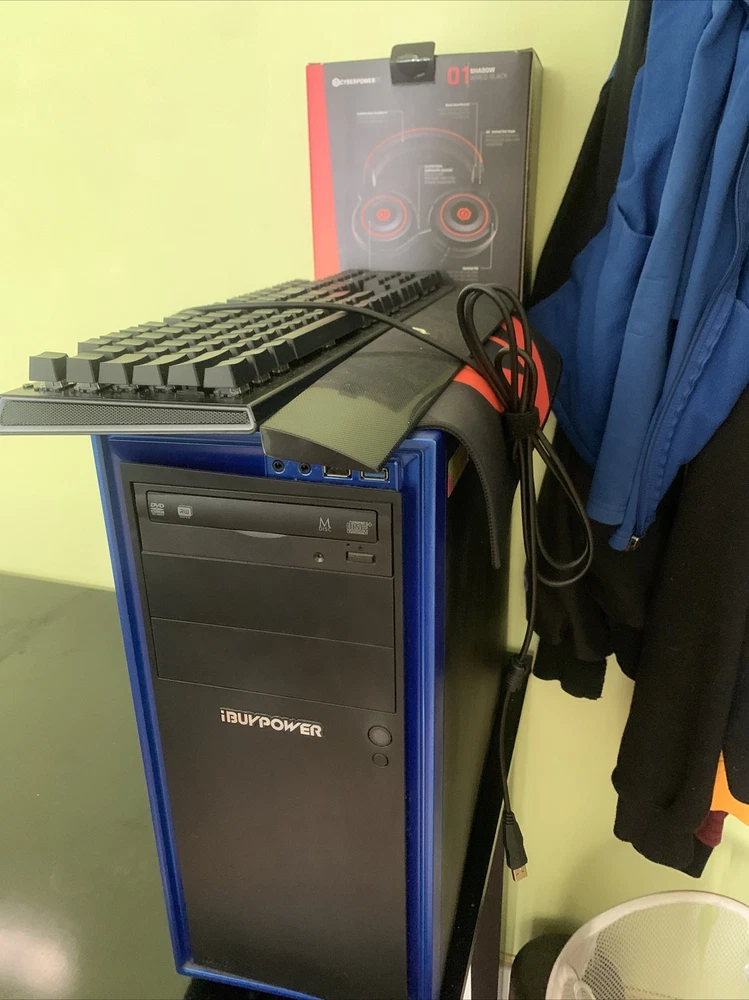 iBuyPower PC RX 560 DUAL FAN 1 TB HARD DRIVE 8GB RAM AMD QUAD CORE PROCESSOR. AMD FX-4300 QUAD CORE CPU GIGABYTE AMD RX 560 2 FANS 8gb RAM MSI MOTHERBOARD 500W Power supply. Will come with CyberPower Mechanical Keyboard, CyberPower Mouse, CyberPower headset. good for used condition, just dusty is all. If you have a clean up kit then performance will be boosted tremendously! Will come properly shipped, PC parts will be wrapped in styrofoam during shipment so no damage.