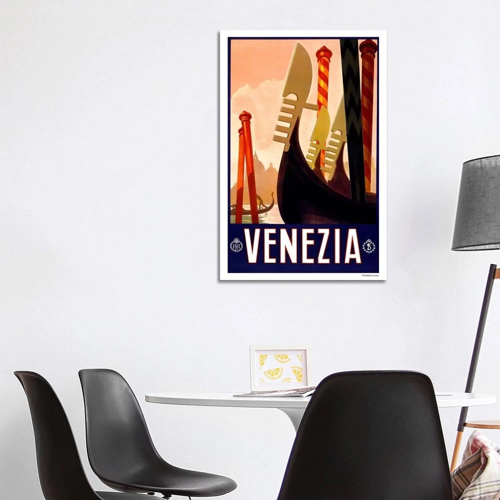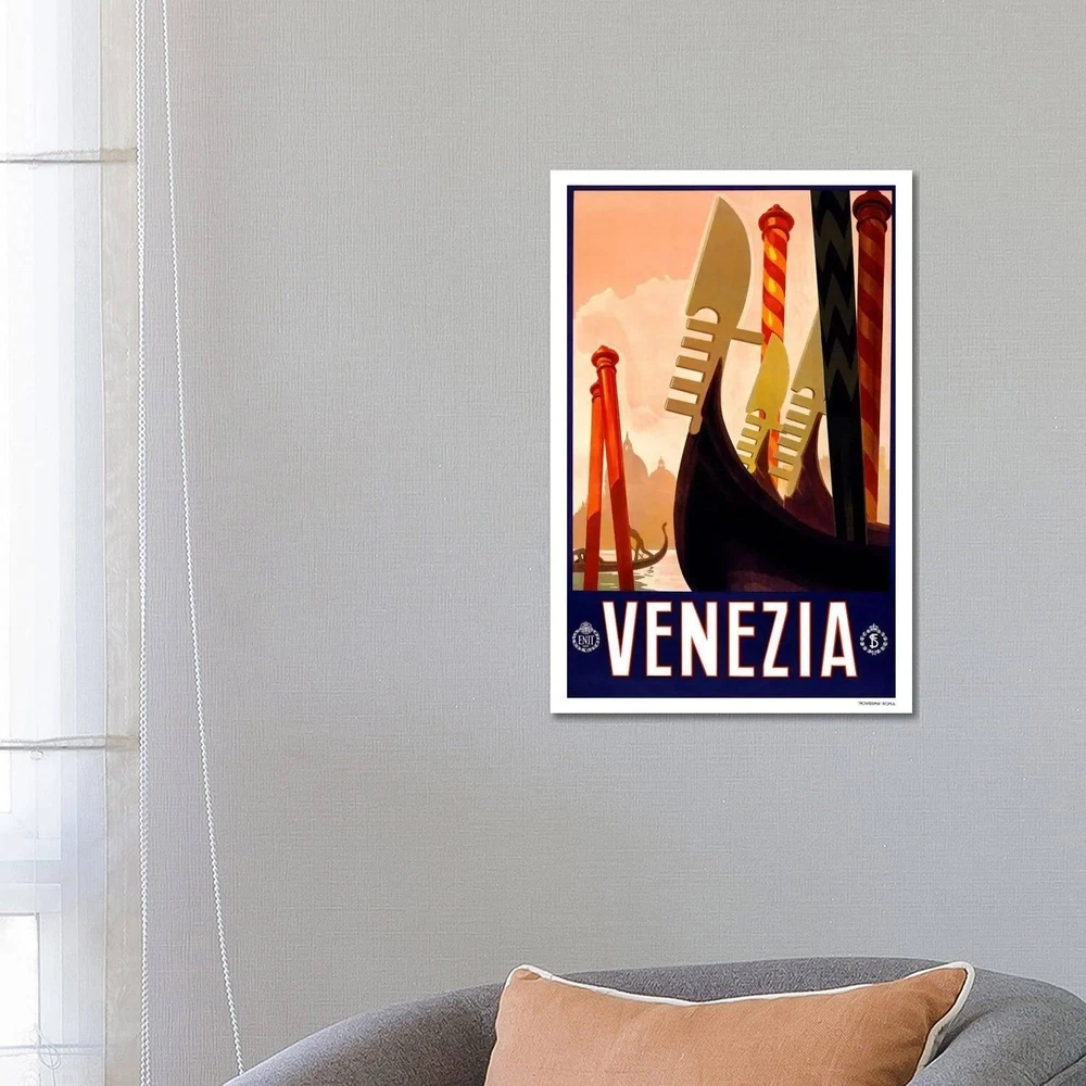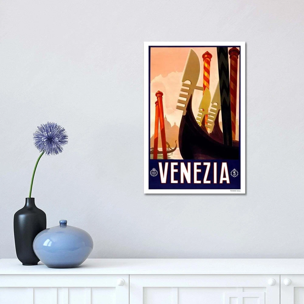The artwork is crafted with 100-percent cotton artist-grade canvas, professionally hand-stretched and stapled over pine-wood bars in gallery wrap style - a method utilized by artists to present artwork in galleries. Fade-resistant archival inks guarantee perfect color reproduction that remains vibrant for decades even when exposed to strong light. Add brilliance in color and exceptional detail to your space with the contemporary and uncompromising style of iCanvasART. Artist:N/ATitle:Venezia Advertising Vintage Poster #5256 Canvas Print Wall ArtProduct Type: Gallery wrapped canvas artOuter dimensions:Small: 18X12x.75Medium: 26X18x.75Large: 40X26x.75NEW: Ready to be displayed right out of the box, including free Hanging Accessories and instructions for a quick & easy hanging process that Free Shipping Over $49.99* Details iCanvas "Venezia Advertising Vintage Poster" by Unknown Artist Canvas Print Product Description: The artwork is crafted with 100-percent cotton artist-grade canvas, professionally hand-stretched and stapled over pine-wood bars in gallery wrap style - a method utilized by artists to present artwork in galleries. Fade-resistant archival inks guarantee perfect color reproduction that remains vibrant for decades even when exposed to strong light. Add brilliance in color and exceptional detail to your space with the contemporary and uncompromising style of iCanvasART. Artist:N/A Title:Venezia Advertising Vintage Poster #5256 Canvas Print Wall Art Product TypeGallery wrapped canvas art Outer dimensions:Small18X12x.75Medium26X18x.75Large40X26x.75 NEWReady to be displayed right out of the box, including free Hanging Accessories and instructions for a quick & easy hanging process that achieves the best positioning results. Quality Wood BarsShrink-resistant wooden-bar frame with tensioning wedges that allow for tightening of the canvas from the reverse side. Dependent and FastProduced by the largest US canvas art supplier.