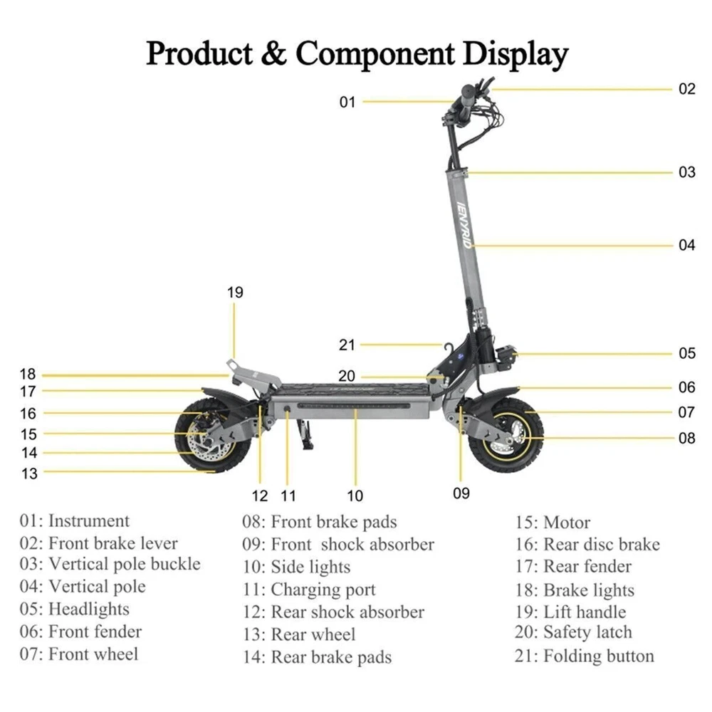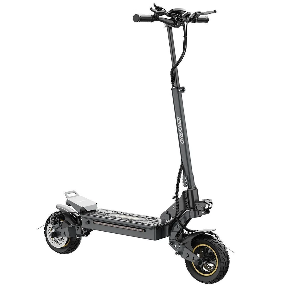 iENYRID 700W 48V Adults Electric Scooters Dual Motors Drive Commute Off Road E-Scooter 2025 Upgraded iENYRID Electric Scooter S-A Foldable Electric Scooter comes with a 700Wh (48V 15Ah) battery assisting 19-25 miles cruising range. S-A becomes an excellent choice for high-quality and comfortable riding. It is suitable for commuting to work, shopping in supermarkets, mountain cross-country and traveling. Powerful Motor & Long Lasting Battery S-A electric scooters f With powerful Dual 700W Motors, detailed parts, detachable seat and foldable design, brings faster acceleration and climbing ability to this electric scooter, which can reach 28 mph max and max 30°climbing angle. Comfortable Commuting IENYRID S-A adult off road electric scooter comes with upgraded 10-inch off-road tires and front and rear dual suspension to ensure max comfort even on bumpy roads. Also, the aviation-grade aluminum frame is stronger and lighter, which makes the scooter much more elegant to look at and handle as well. And it has a max load of 280 lbs. Foldable Electric Scooter Easy to fold and carry, carry it on public transportation or store it in your car to get to wherever you want. Dynamic, Easy storage in car trunks and other compact spaces, occupying little space and suitable for travel and transportation commute. IPX5 Super Waterproof & LED Intelligent Lighting System The waterproof frame and deck are tightly sealed against water, accredited with an IPX5 ingress protection rating painting. The head of the e scooter is equipped with three LED lights with different functions to ensure safe and worry-free riding at night. Specification: Type: Electric Scooter for Adults Model:S-A Motor: 700W Tyre Type: Air tires Battery specification: 48V 15AH Charger specification: Input 100-240V 50/60Hz 2.0A, Output 54.6V 2A Max Controller specification: DC48V/36A Charging time: 6-8 hours Frame Material: Aluminum alloy Light: Front LED headlights, sidelights, and taillights Drive mode: front and rear wheel dual drive Max Speed: 28MPH Max Range: 19-25 Miles Max Load: 265 lbs Maximum climbing ability: ≤ 30 ° Tires: 10 in off-road pneumatic tires Frame Material: aluminum alloy Braking method (front/rear): mechanical braking Front shock absorber: Yes Rear shock absorber: Yes Front headlights: integrated with horn Tail lights: Yes Edge light: Yes Brake lights: Yes Net Weight: 65 lb Front and rear tire pressure: 50 ± 10psi Product Size (L x H x W): 47.24 x 49.6 x 23.62 in (unfolded), 45.67 x 20 x 23.62 inch (folded) Package Size: 128*24*48 cm Package Contents: 1 x Charger 1 x User Manual 1 x Electric scooter Warning: It is illegal to ride electric scooters on public roads (except under very specific circumstances), pavements or cycle paths. They are intended only for use on private land with the owner’s permission.