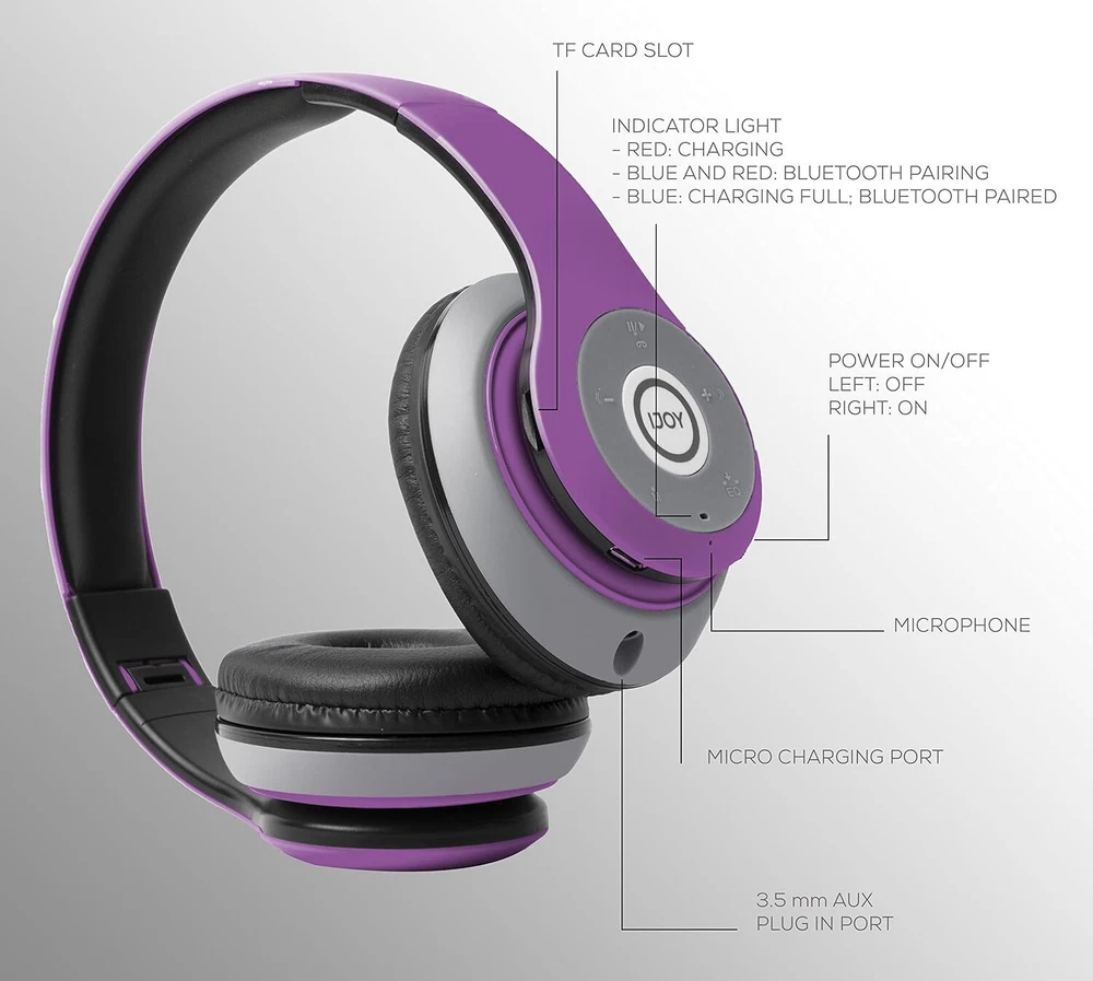 iJoy Matte Rechargeable Wireless Bluetooth Foldable Over Ear Headphones with Description iJoy Matte Finish Premium Wireless Bluetooth Headset Foldable Headphone Features Deep, accurate bass response,Extended frequency range, Rechargeable 5-button control, including Play/pause/answer/hangup,Equalizer,Next track/volume up, Previous track/volume down Ear cups fit around ears to help isolate audio, Foldable design for easy carry, noise canceling design Micro SD card plug-in, built in Radio receiver, Built in Mic for Hands Free calling New: 6 MONTHS!! exchange warranty! If your headset breaks or is damaged for any reason, Pranx will provide you with a FREE replacement! About Us We want to provide you with the hottest deals on the internet. Every item we sell are ready to ship and most items ship within 24 hours during business days. We try to answer all questions within 24 hours Monday - Friday. Send us a eBay message, we are always here to help you. Payment Only Paypal Payments are accepted at this time, however you may utilize the tools within PayPal to pay via your credit card. Shipping Handling Time: We ship Next Business Day - Monday to Friday in most cases. Please understand that an occasional delay may occur. Domestic Shipping - Domestic Shipping takes typically takes 3-5 business days via our normal shipping carriers. All Domestic US to US shipping will be indicated as Standard Shipping during checkout. Shipping Choices will be made depending on size and order weight. We do not ship to Hawaii, Alaska, US Territories or PO Boxes. Please ensure the address you provided was correct, as changes cannot be made after payment has been made. All orders are shipped to address you provided during ebay checkout. We only ship to address indicated during Paypal Checkout, please ensure your shipping address in Paypal and Ebay is your intended delivery address. Returns No Questions Asked - All returns accepted. You should contact us within 30 days after your order is placed for a free return label. Refund given as Money Back.