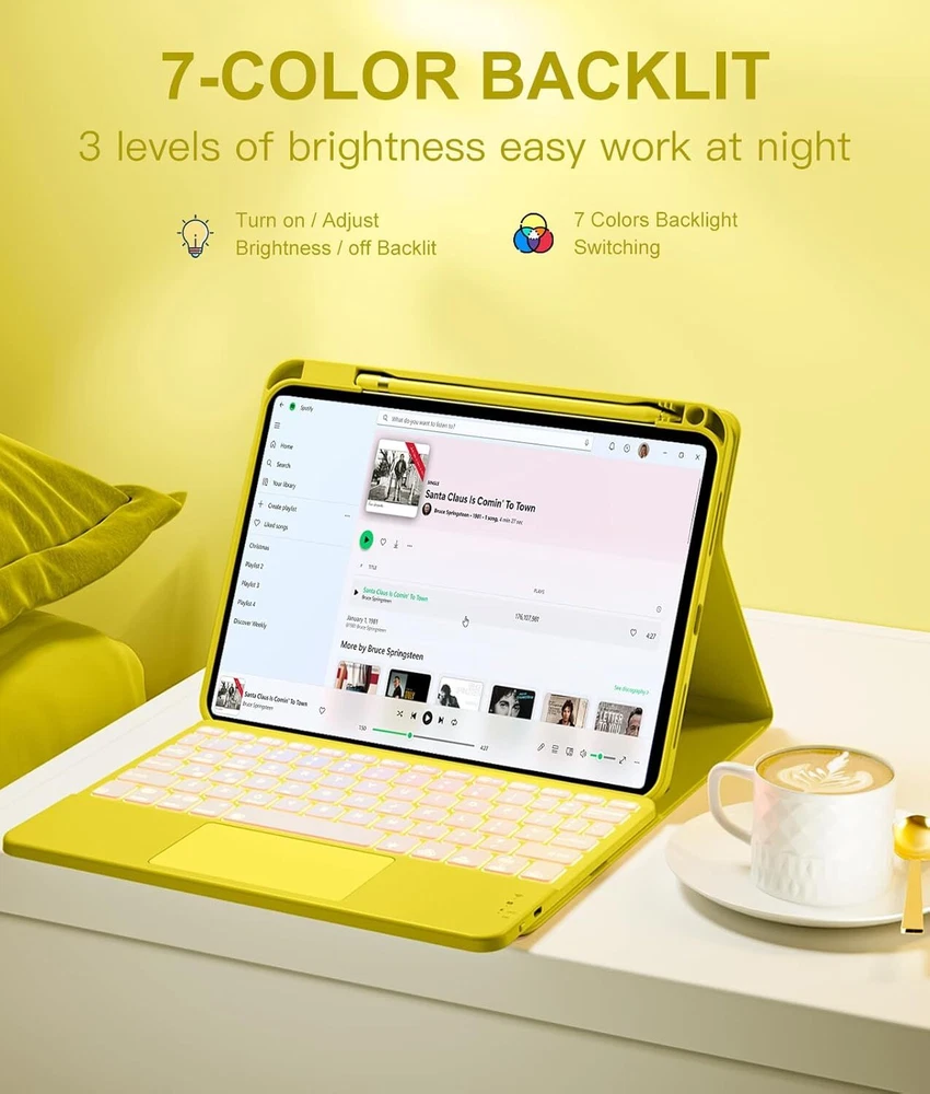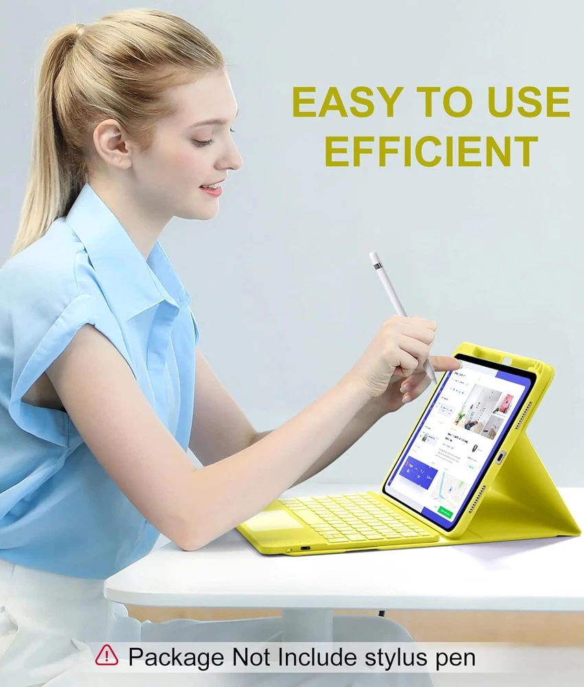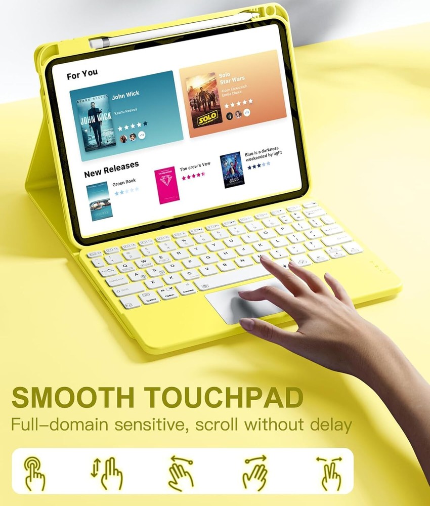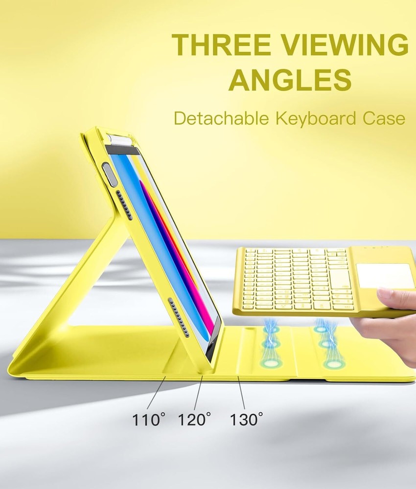 Keyboard Case Compatible for iPad 10th Generation 10.9 Inch, Folio Yellow Product Details Brand: Harvopu Color: Yellow Compatible Devices: For iPad 10th Generation 10.9 inch 2022 (Model Number:A2696/A2757/A2777) Form Factor: Case Shell Type: Soft 【Quick Navigation Trackpad】Harvopu for iPad keyboard 10th generation built-in high sensitive trackpad, allows you enjoy the convenience of performing multi-finger gesture control (like tap, swipe, scroll and switch apps), which level up your productivity when browse the web, edit documents and more 【Magnetically Detachable Keyboard】For iPad 10th gen keyboard is magnetic and it can be strongly attached to the case or detach completely. When you do not need the keyboard can be stored away, easy to carry it on the go. It is easy, fast and stable to connect via BT, reconnect immediately turning it on 【Illuminated Typing】Harvopu 10th gen case with keyboard with a full row of the laptop-like iPadOS shortcuts is customized for your tablet, and allow you easily switch between adjusble 7 RGB pure backlit with 3 levels adjustable brightness, engaging yourself in a free and relaxed typing experience in any dim condition 【Multiple Viewing Angle】There are 3 anti-slip grooves design inisde of the case provides the perfect stand angle, so you can change where the tablet is on the case and adjust the screen angle this way for drawing or writing on, do more computerig, suitable for home, office or school use 【Stain-Resistant Protective Case】The 10.9 case is made of upgarded soft PU of organosilicon hat is smooth touch and great anti-stain so that keep brilliant as new. TPU interior cover comes with honeycomb design perform well in heat dissipation and protects your tablet from shocks, scratches 【Connect the keyboard to the Tablet】Power on keyboard and open Bluetooth in tablet Settings, Keep pressing function key "Fn+ C" button (for 3 seconds), Search for "Bluetooth Keyboard" on other devices and then click Connect (Note: After pairing successfully, it will automatically connect once open the keyborad anytime.) 【Long Life Battery Rechargeable Keyboard】Built-in powerful 420mAh battery and enters energy-saving mode automatically if not in use for 15 minutes, which worry-free use and long standby time. Using a Type-C charging port of keyboard charges faster, only 2-3 hours full charge 【After-sales Service】You will get: 1 x Case for iPad 10th Generation, 1 x touchpad keyboard, 1x Type-C charging cable, 1 x user manual. (NOTE: pencil are not included.) If any questions about the model or function of our keyboard please feel free to click on the history order to contact us