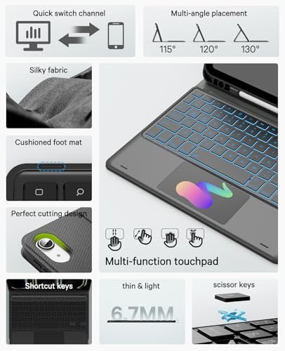 Return Policy Fast Delivery Trusted seller For iPad 10th Generation Case with Keyboard (10.9", 2022), 7 Color Backlight, Multi-Touch Trackpad, Flip Stand Case with Pencil Holder, 2 Bluetooth Channels for iPad 10th 10.9 inch 2022, Black Product Description Backlit Keyboard for iPad 10th Generation: three-level adjustable brightness and 7 pure led backlit, engaging yourself in a free and relaxed typing experience in any dim condition. The backlight will automatically turn off if you are not typing for over 30 sec to save power. Multi-touch Trackpad: this keyboard case for iPad 10th generation has an integrated multi-touch trackpad that perfectly adapts to the IOS system, with various trackpad gestures, providing a comfortable usage experience while ing, scrolling, and swiping through content effortlessly. Allows you to turn your 10.9 inch tablet into a laptop. Magnetically Detachable Bluetooth Keyboard: the intelligent keyboard case lets you switch between a lightweight laptop and tablet. Equipped with multimedia and other useful shortcuts, this detachable wireless keyboard provides you with the ultimate convenience. With a powerful 500mAh battery, its standby time lasts 120 days, even enters into sleep mode automatically if not in use for 15 minutes. 2 Bluetooth Channels & Pencil Holder: pair with up to 2 devices simultaneously and easily switch between them with only 1 . Built-in Pencil holder for Apple, cap & adapter slots, grab your Pencil, easy to carry and use. Precise cutouts allow full access to all ports, sensors, speakers, microphones, and cameras. Compatibility: this backlit wireless keyboard case is ONLY compatible with iPad 10th Gen 2022 (Model number: A2696/A2777/A2757). Shipping Returns Payment Shipping Shipping is FREE to all addresses other than APO/PO boxes in the lower 48 states. All our stock ships from US-based warehouses. Shipped via USPS or UPS (depending on location and package weight) Unless stated otherwise, all orders will ship within 24-72 hours of your payment being processed. Check our feedback to see the great reviews of FAST shipping we offer. Returns Seller does not accept returns Payment We currently accept payment via eBay managed payments only. Once payment is cleared, we will dispatch your shipment within 1-3 business days. Please refer to the "Shipping" tab for more information regarding shipping speed to your destination.