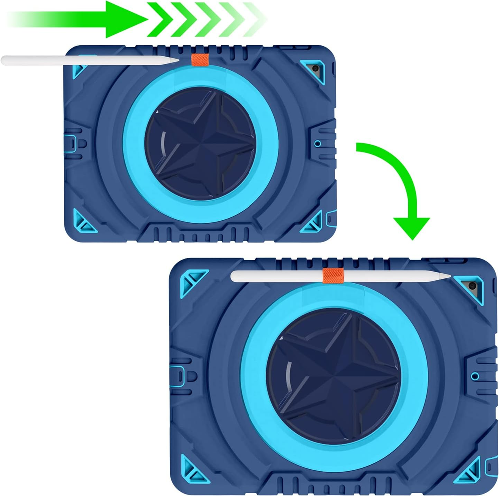 This heavy-duty iPad case is a game-changer! The shockproof design keeps my device safe, while the rotating stand and pencil holder add so much convenience. The shoulder strap makes carrying easy, and the blue color looks sleek. Perfect fit for my 10.2-inch iPad—durable, functional, and totally worth it!