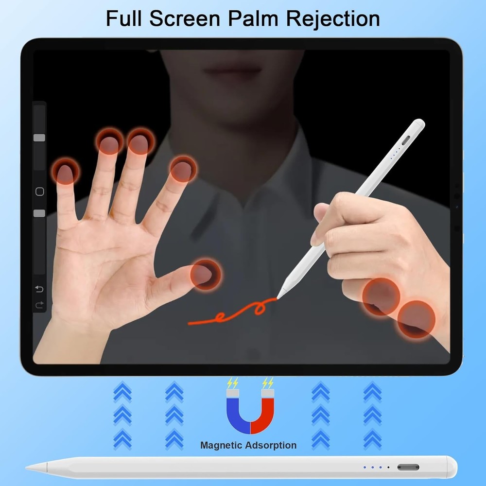iPad Stylus Pen 2018-2025 - USB-C Fast Charging Magnetic Tilt-Sensitive Apple Pencil Alternative