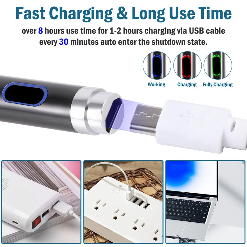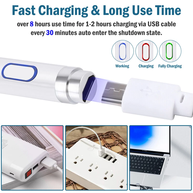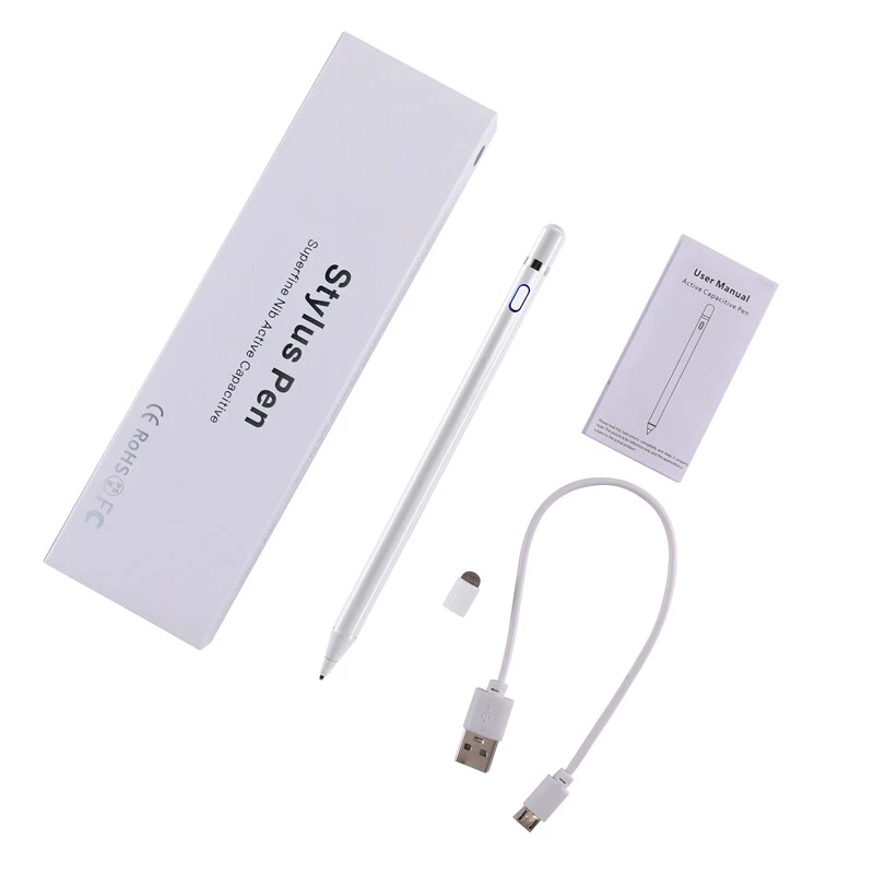 Pencil Stylus For iPad iPhone Samsung Smart Tablet Pen Capacitive Touch Screen Pencil Stylus For iPad iPhone Samsung Smart Tablet Pen Capacitive Touch Screen 100% Brand New & Excellent quality Free & fast shipping, with tracking number provided Feature: * Continuous use up to 8-10 hours, 30 minutes without use will automatically power off, three-color LED lights indicate activity, charging or fully charged. * Stylish and simple style, aluminum alloy material and painting process, the pen tip is made of special conductive material, precision grinding, which can prevent damage to the screen. * The stylus is sensitive to pressure and tilt, so you can easily change line thickness, create subtle shadows, and produce various artistic effects. * This stylus adopts the latest technology to ensure that it is widely compatible with all touch screen products, suitable for most mobile phones, tablets, capacitive screens and other electronic devices. Specification: Model: 2262 Color: Black / White /Red/ Sliver Material: aluminum alloy Process: painting, electroplating Input: 5V-0.2A Applicable models: universal Battery: 100mAh Charging time: 50 minutes Working time: 8-10 hours Charging time: 50 minutes Working time: 8-10 hours Charging interface: Micro charging interface Product size: 175 (length)*8.9 (diameter) mm/6.9*0.35inch Color box size: 21*6.1*2.1cm/8.3*2.4*0.83inch Package includes: 1 x Stylus 1 x Manual 1 x Micro Charging Cable 1 x Pen Cap 1 x Packing Box Payment Shipment Return Feedback Contact us Payment * We Accept Payment via PAYPAL ONLY . * Payment Must be Made within 4 Days of Auction Closing. * Non-Payment may Result in a UPI (Unpaid Item) being Put on Your Account. eBay will Automatically Close Your Account if You Accumulate 4 UPI's total. * Please List Your Special Requests ( Color, Size, Packages, etc. ) in the PAYPAL NOTES SECTION when you make payment. Shipment * Shipping will be handled in 24 business hours after payment got. Ship to PayPal Address only , please confirm it before paying. * Please leave your phone number in the address in case there is an address problem. Return * Returns and Exchange accepted within 60 Days. * Refund will be given as Money Back. * Free Return shipping. * Before you return the defective item,please email us for the RMA, and we will reply you in 24 hours in working days. If you do not get reply please check if your mail box has refused our reply or not, then send to us again, thanks! Feedback If you are satisfied with the transaction please remember to leave us a positive feedback (5-Star) will be much appreciated. Please DO remember to contact us before leaving the neutral (3 stars) , negative feedback (1-2 stars) or opening a case/dispute if any problem caused by the item . Normally your email would get replied within 24 hours on working day and your issue would be followed up carefully until we've reached a consensus! We will try our best to solve the problem and leave you a happy shopping mood here. Thank you! We are not only selling good items, but also selling with excellent after-sale service and a strong sense of responsibility. We will always try our best to find you a satisfactory solution if any problem takes place! Contact us Email muchbuy-outlet at Paypal registered email or ebay message.