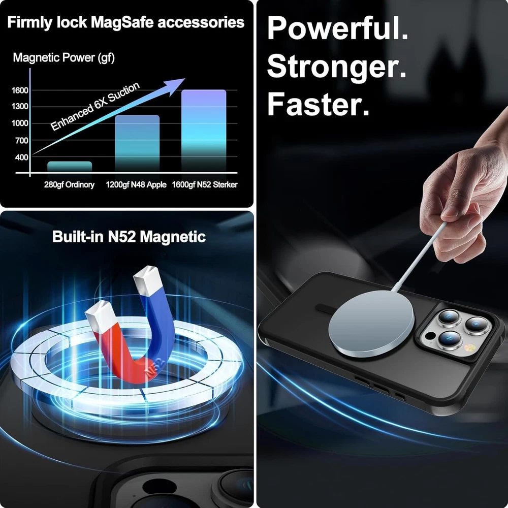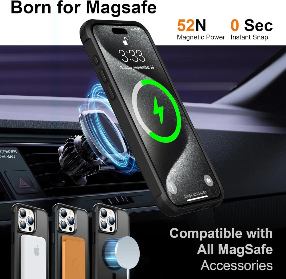 -Brand New - Never Used - Questions: Feel free to ask any Questions - BOX: Never Opened - DESCRIPTION: 🧲【SuperStrong Magnet, Ever-healthy, efficient】 The new iPhone 15 Pro Max magnetic cases with built-in 38 pieces of N52 super-strong magnets make wireless charging faster and easier than ever. STERKER Magnets are re-architected to be perfectly aligned with the magnetometer, magnet array, and charging coil designed by the iPhone 15 Pro Max Case. Strong magnets don't have to worry about it wobbling, this will bring more convenience for your daily life. 🧱【Rugged Inside & Outside Double Defense】 Our Impact Crush iPhone 15 Pro Max cases are military-grade drop tested from 10-feet, and made with Airbag 2.0, our proprietary shock-absorbing material. The convex design of the four corners maximum shock absorption from all angles, the 0.8mm raised screen lips and lifted 1.2 mm camera bezels make it keep away from scratches, every detail is fine-tuned for optimal protection, superior impact resistance, and ultra-sleek, ultra-slim style. ❄️【Safe & Cold Charging Experience】 With a conductive magnetic ring inside, the smooth back can be paired with any MagSafe accessories you want to make it more diverse. This built-in magnetic phone case does not cause the charging heat that external invisible metal magnetic stand cases have, and the sleek one piece case has got all your charging and protective needs covered, literally. 🖐️【Feeling the differences in Touch and Visual】 The polycarbonate back and flexible rubber edges bring more good touch and grip to the phone case you use. This translucent iPhone 15 Pro Max phone case showcases your iPhone logo and the minimalist design allows your own personal style to shine. It is aesthetically pleasing at all times, unlike a clear case that discolors over time. - OFFERS: Reasonable offers are considered, LOWBALLERS, Best price and Lowest askers will be ignored - all sales final/no refunds/ no exchanges/ no returns - Disclaimer: I do not own the brand's trademarks, logos, pictures, or products posted. I do not intend to infringe on copyright. I find such content available on the internet. Contents are considered fair use. - Magnetic Guardian Designed for iPhone 15 Pro Max Case [Compatible with MagSafe][Military Grade Drop Tested] Translucent Slim Case for iPhone 15 ProMax Phone Case(6.7"), Black Titanium