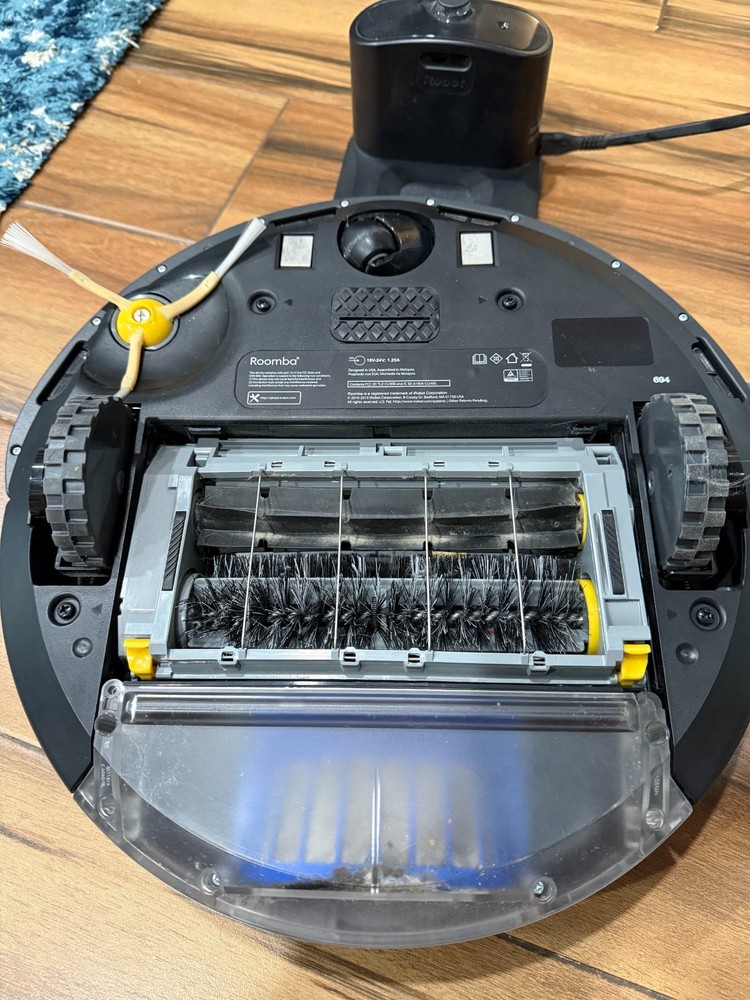 Lightly used, cleaned out. The iRobot Roomba 694 WiFi Vacuum in Charcoal is a high-tech robotic vacuum cleaner that offers impressive runtime of 90 minutes and fast charge time of 1 hour. This cordless vacuum features rotating brushes and is designed for easy maintenance with its bagless design. With its Wi-Fi connectivity, it can be controlled and scheduled remotely through the iRobot app or connected to smart home systems like Amazon Alexa and Google Home for hands-free operation. Whether you are looking for a convenient and efficient cleaning solution for your home, the iRobot Roomba 694 is a reliable and advanced choice.