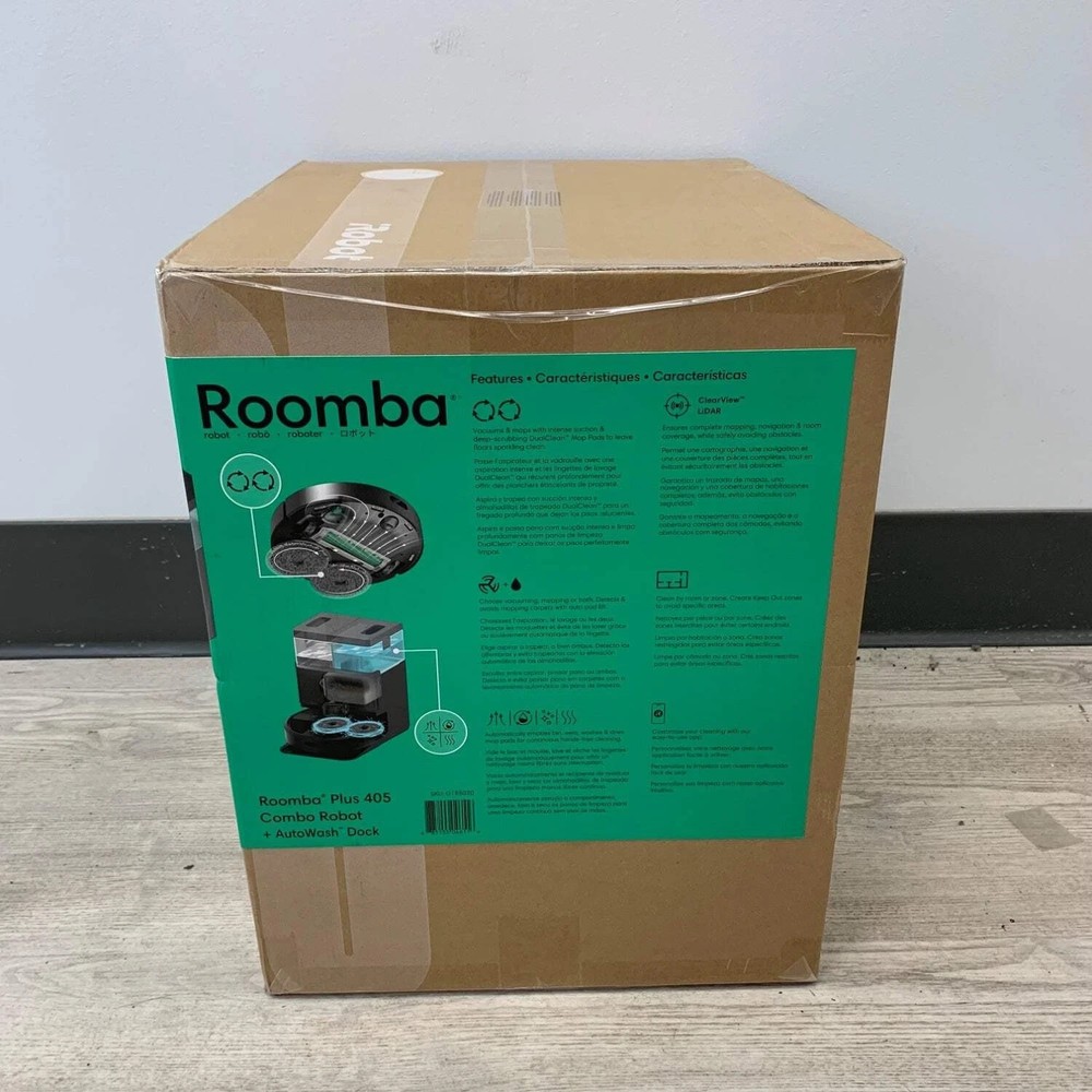 iRobot Roomba Combo Plus 405 (G185) Robot Vacuum & Mop w/ AutoWash Dock Category: Home & Garden > Household Supplies & Cleaning > Vacuum Cleaners > Robotic Condition: New (or change to Open box / Used if needed) Description: The iRobot Roomba Combo Plus 405 (G185) is an advanced robot vacuum and mop designed for fully automated floor cleaning. With powerful vacuuming, spinning mop pads, and an AutoWash Dock, this system handles dirt, debris, and mopping maintenance with minimal effort. The AutoWash Dock automatically empties debris, washes and dries the mop pads, and keeps the system clean and ready for the next run. Smart LiDAR navigation allows precise mapping and efficient cleaning, while the pad-lift feature prevents wet mopping on carpets. Features: • Vacuums and mops in one device • Spinning dual mop pads for effective scrubbing • AutoWash Dock with self-emptying, pad washing & drying • Self-cleaning dock reduces maintenance • Pad-Lift technology keeps carpets dry • LiDAR navigation for accurate mapping and room detection • Ideal for hard floors and mixed floor homes • Wi-Fi connected, app-controlled cleaning (iRobot app) Model Number: Roomba Combo Plus 405 (G185) What’s Included: • iRobot Roomba Combo Plus 405 Robot • AutoWash Dock • Mop pads (as included by manufacturer) • Power cord • Original accessories (as packaged) Shipping: Fast, secure shipping with tracking provided. Returns: No returns accepted. Please review details carefully before purchasing.