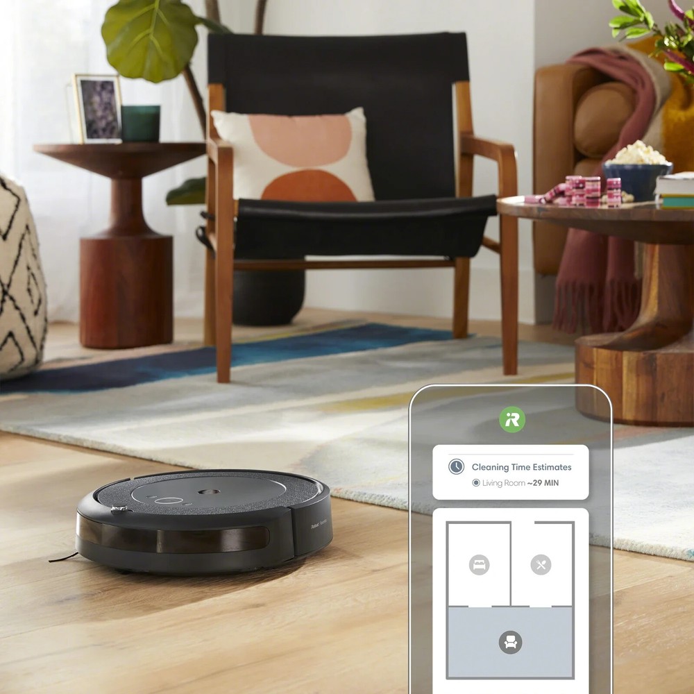 The iRobot Roomba i4+ is a smart vacuum cleaner with Amazon Alexa compatibility. It features automatic dirt disposal, allergen filtration, and a 75-minute runtime. This cordless vacuum has a 1000W power, removable brushroll, and Wi-Fi connectivity. The included accessories are filters, and it has a charge time of 1 hour.