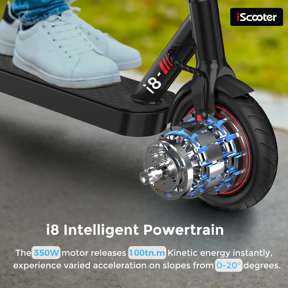 iScooter Electric Scooter 350W Adult Long Range Fast Speed Folding E-Scooter Intelligent Powertrain The 350w motor releases 100tn.m Kinetic energy instantly, experience varied acceleration onslopes from 0-15° degrees. Headlight and Rear Light One-Click turns on/off headlight, it can ensure your riding safely in dark environments and smartrear light design improves more visibility Double braking systems Front Eletronic Brake + Back Disc Brake ensure quick response and strong breaking power forextra safety Revolutionary Battery Performance Enabling Speeds of up to 15mph. Comfortable Commuting Safe teenager electric scooter can easily handles your commute and travel Foldable Design The net weight is 26.4lbs and this scooter can be carried easily The package includes: 1 x i8 Electric scooter 1 x Charger 1 x Allen Wrench 4 x Screws 1 x Manual Payment Delivery details Return Feedback Contact us Payment * We accept PayPal only * Please verify your address during checkout. We are not responsible for any wrong or undeliverable addresses. * If there is anything wrong with the checkout or you need us to combine the shipping, please kindly feel free to contact us. Delivery details 1. Items are generally shipped out the next business day after your payment has been cleared (Sat. Sun. excluded.) 2. The shipment usually takes 3-5 business days (Saturday and Sunday excluded), if you need the item urgently, please contact us for detail before purchase. * We Ship to Payment address ONLY. So please confirm shipping Address prior to your payment. We are not responsible for any wrong or undeliverable addresses. Return Products with quality problem in 30 days can be returned and refund /replaced (Item in resalable condition) Products with quality problem in 1 year can be returned and repaired. (For more details, please read our warranty policy). Feedback Contact us if you have any question, please give us a chance to serve you, negative feedback couldn’t solve anything, communication Please! Contact us Welcome back to our store! Customers satisfaction is our top priority.