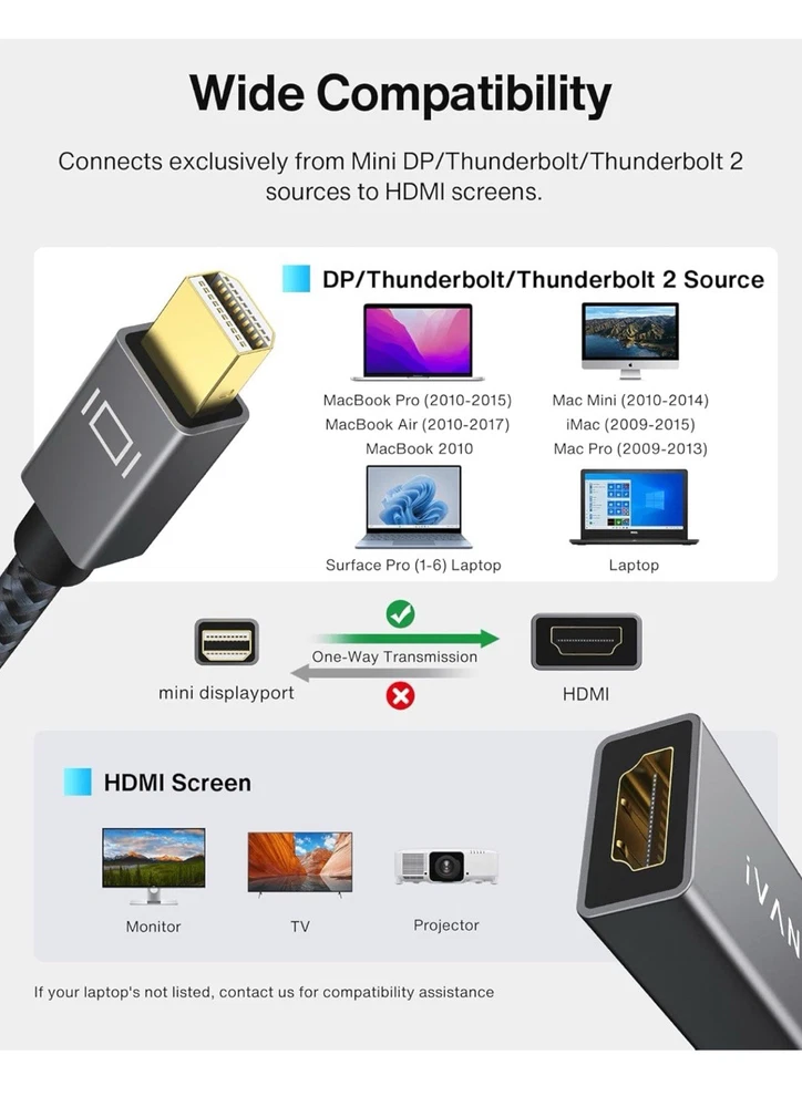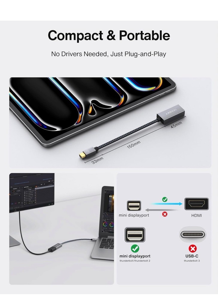 iVANKY Mini DisplayPort to HDMI Adapter for Thunderbolt & Mini DP Connections