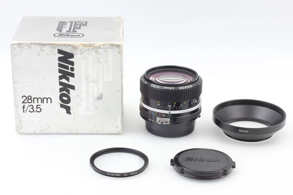 in Box [MINT w/Hood] Nikon Ai Nikkor 28mm f/3.5 Wide Angle MF Lens From JAPAN #1347756737213 Description Total Condition; MINT Serial Number; 197439 Appearance; Appearance is beautiful. It shows minimal signs of use. *Please check photos. Optics; -Lens: Beautiful condition. There is no fog. There is no fungus. There is no balsam separation. There are no scratches. There are no large dusts. No problem in the shooting. Functional; It works properly. Bundled Items; Front lens cap , Rear lens cap. Lens filter. Lens Hood. Box. All you can see on the picture will be included in a set of a package. The battery is export prohibited substance, it's not included. Above condition is based on my own opinion. Please check the photo carefully. Please feel free to contact me for any questions! Thank you Very Much. Shipping I send a product by DHL . I attach the tracking number. Please bid it without worrying. Shipping is only available to the address registered in eBay. Please note that any address not registered in eBay is not acceptable to ship. Shipping is available from Monday to Friday. Weekends are not available because office is closed. Storage and Packing Storage Immediately after shooting, it is placed in a closed container with desiccant and stored for 24 hours and 365 days in a temperature and humidity controlled warehouse. All products, including cameras and lenses, are stored in a temperature- and humidity-controlled warehouse 24 hours a day, 365 days a year. Packing By weight and shape of each product, I use 13 kind of cushioning materials and pursue safety and weight reduction. Returns Unconditional Return Policy Customer service and satisfaction are very important to us. I have an unconditional return policy if notified within 30 days of the receipt of the item. All returned items must be the original condition. All return requests must be made within 30 days of the receipt of the item. Please contact me first for return before you ship it back to me. The postage of the returned goods is a seller burden. International Buyers Please Note: Import duties, taxes, and charges are not included in the item price or shipping cost. These charges are the buyer's responsibility. Please check with your country's customs office to determine what these additional costs will be prior to bidding or buying.
